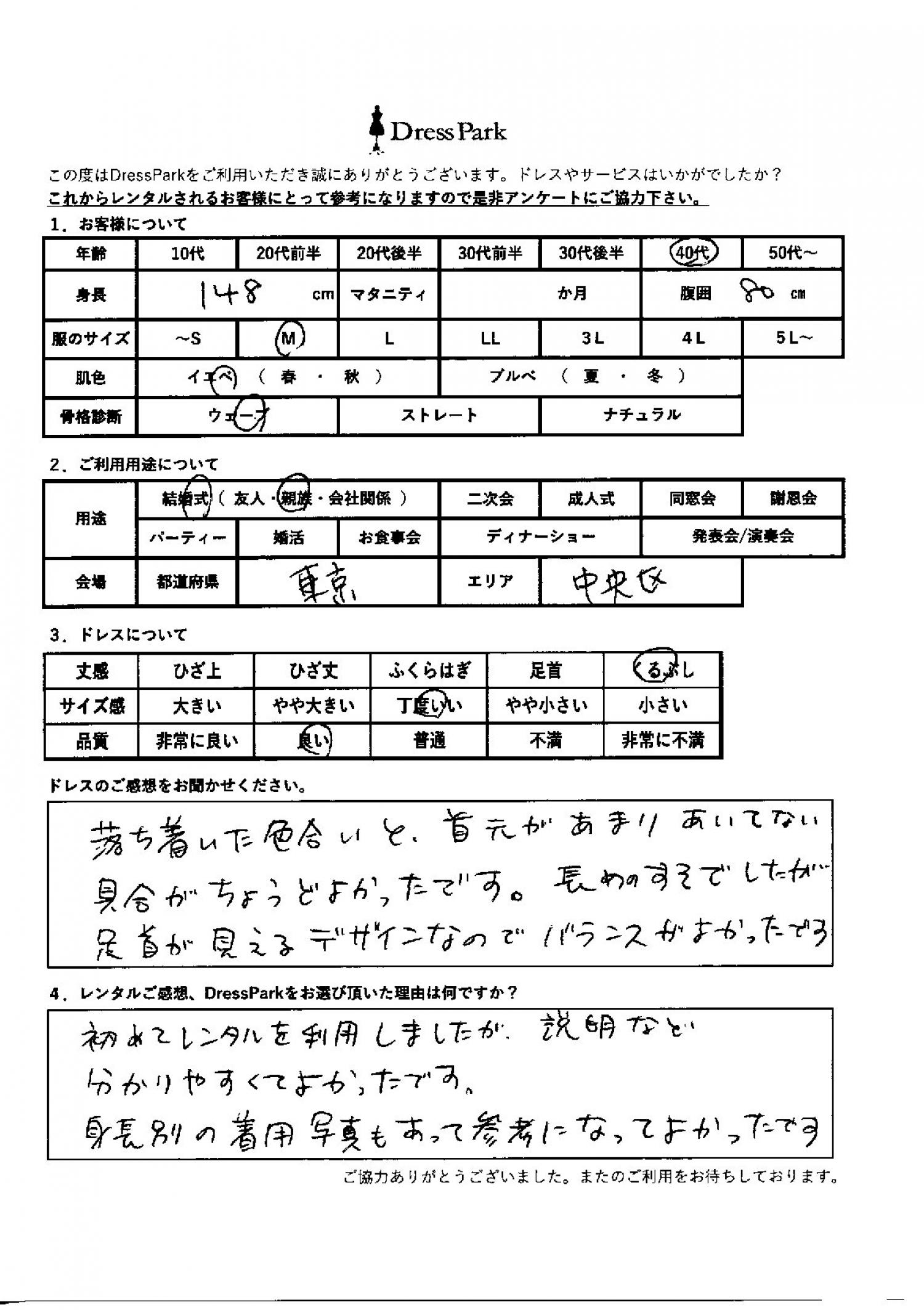 東京都 C.M様148㎝ Mサイズ銀座・丸の内