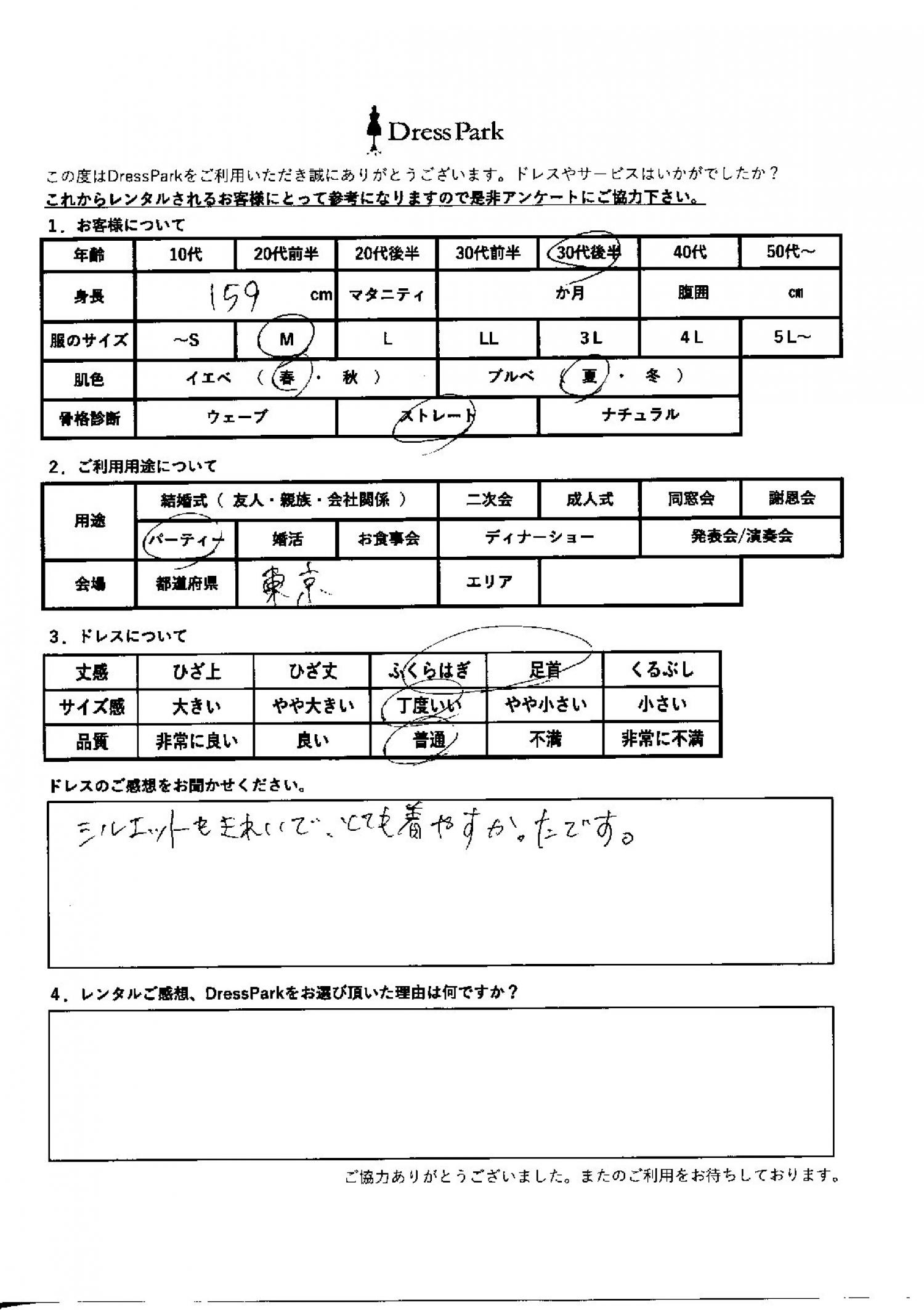 東京都 T.K様159㎝ Mサイズ #30代#M/L#155~159㎝#パーティー#東京都 ◆レンタルしたドレスはこちら ◆レンタルしたサイズは:M ◆レンタルした日付:2026/01/19 ドレスの着用感 ◆点数: (4点) ◆丈感:足首 ◆サイズ感:丁度いい ◆品質:普通 ◆肌色:イエベ ◆骨格診断:ストレート ドレスの感想 シルエットも綺麗でとてもきやすかったです。 CUSTOMER REVIEWS お客様の声 気になるカテゴリー別にご利用の感想をチェック! ◆AGE 年代で見る 10代 20代 30代 40代 50代~ ◆SIZE サイズで見る SS/S M/L 大きいサイズLL~ ◆HIGHT 身長で見る 140~149㎝ 150~154㎝ 155~159㎝ 160~164㎝ 165~169㎝ 170㎝以上 ◆マタニティ ~3か月 4~6か月 7~8か月 9~10か月 ◆肌色 イエベ ブルべ ◆骨格診断 ウェーブ ストレート ナチュラル ◆利用シーン 結婚式(友人) 結婚式(親族) 結婚式(会社関係) 二次会 成人式/同窓会 謝恩会 パーティー その他 CUSTOMER REVIEWS都道府県別お客様の声 都道府県別にのお客様の声をチェック! 北海道 青森県 岩手県 宮城県 秋田県 山形県 福島県 茨城県 栃木県 群馬県 埼玉県 千葉県 東京都 神奈川県 新潟県 富山県 石川県 福井県 山梨県 長野県 岐阜県 静岡県 愛知県 三重県 滋賀県 京都府 大阪府 兵庫県 奈良県 和歌山県 鳥取県 島根県 岡山県 広島県 山口県 徳島県 香川県 愛媛県 高知県 福岡県 佐賀県 長崎県 熊本県 大分県 宮崎県 鹿児島県 沖縄県 CUSTOMER REVIEWSエリア別お客様の声 都道府県別にのお客様の声をチェック! 札幌 仙台 名古屋 軽井沢 金沢 神戸・芦屋 博多 那覇 梅田・新大阪 難波・心斎橋 鎌倉・湘南 横浜・みなとみらい 舞浜・浦安・幕張 大宮・浦和 青山・表参道 六本木・麻布 渋谷・恵比寿 新宿 池袋 銀座・丸の内 お台場・汐留 鹿児島市 郡山市 福島市 東予 甲府・石和 LINEでお問い合わせ このサイトではJavaScriptを使用しています