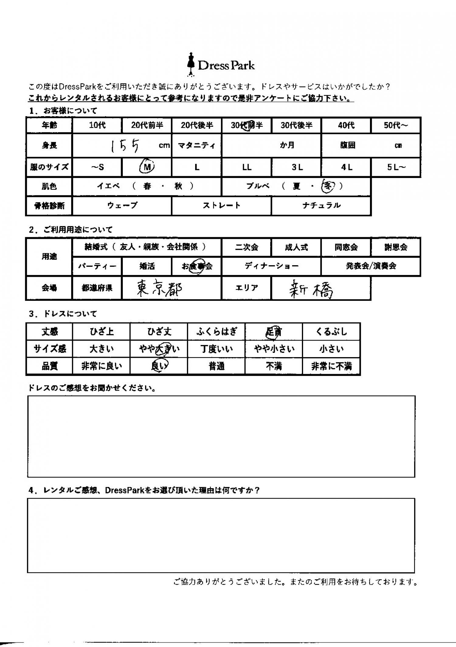東京都 Y.M様155㎝ Mサイズ