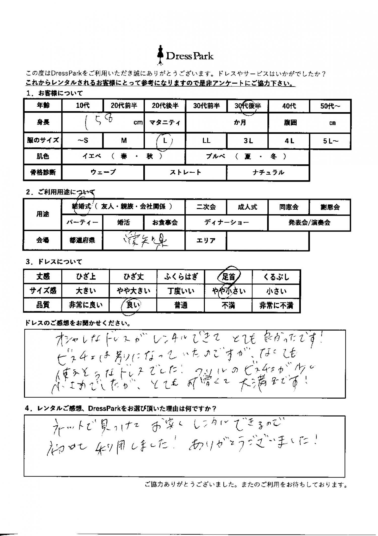 愛知県 M.M様158㎝ Lサイズ