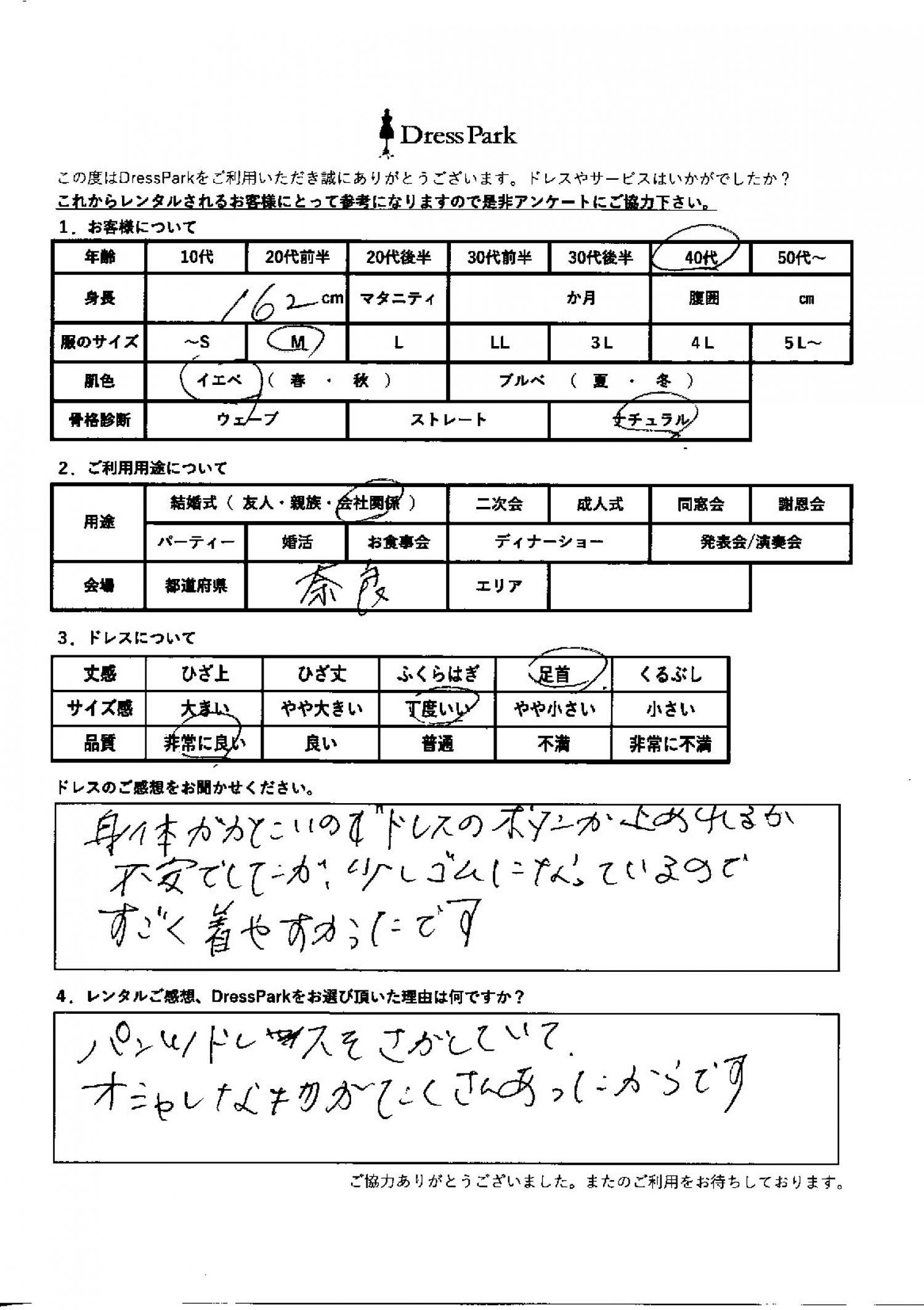 奈良県 Y.Y様162㎝ Mサイズ