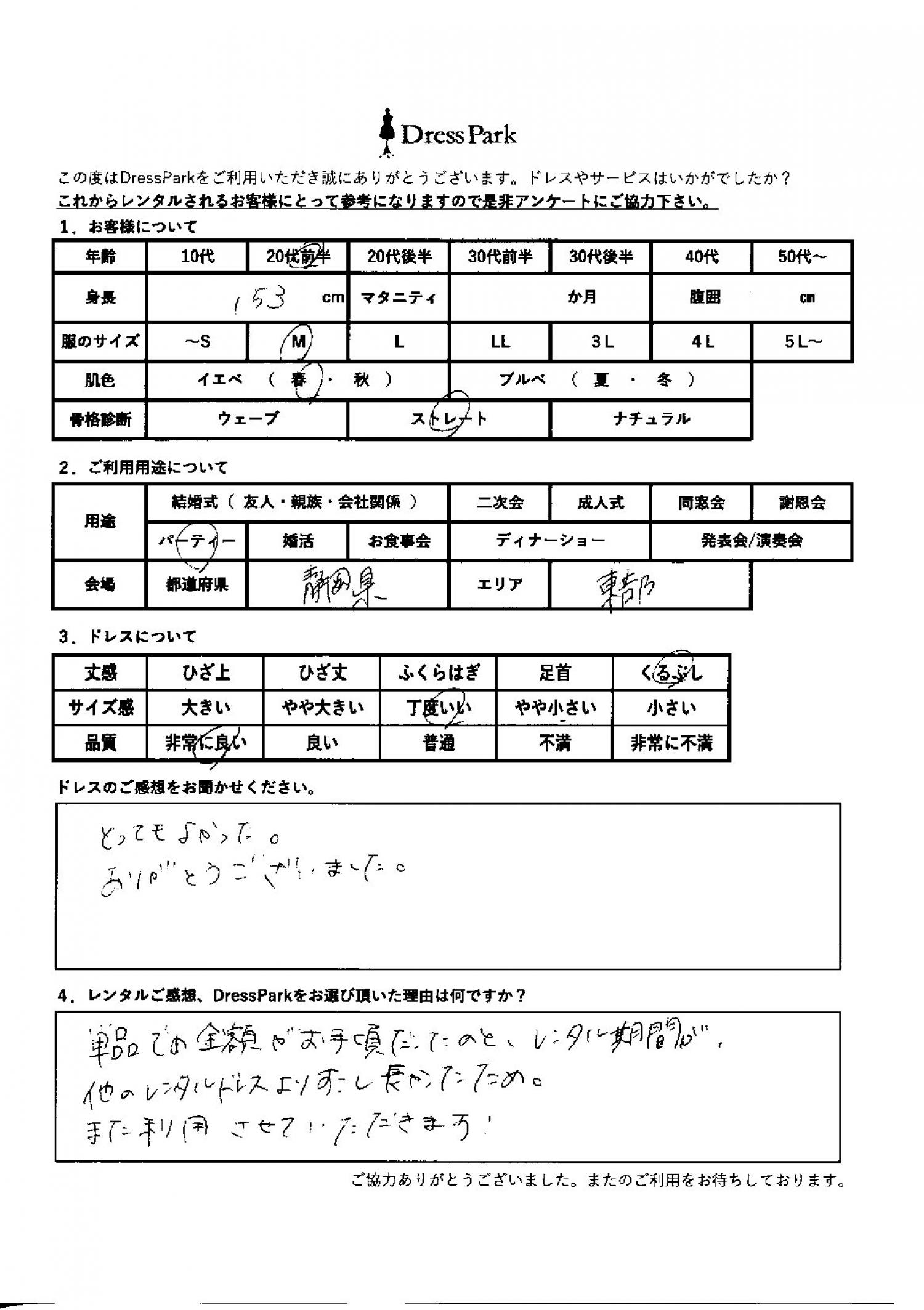 単品での金額がお手頃だったのと、レンタル期間が他のレンタルドレスより少し長かったため。また利用させていただきます!
