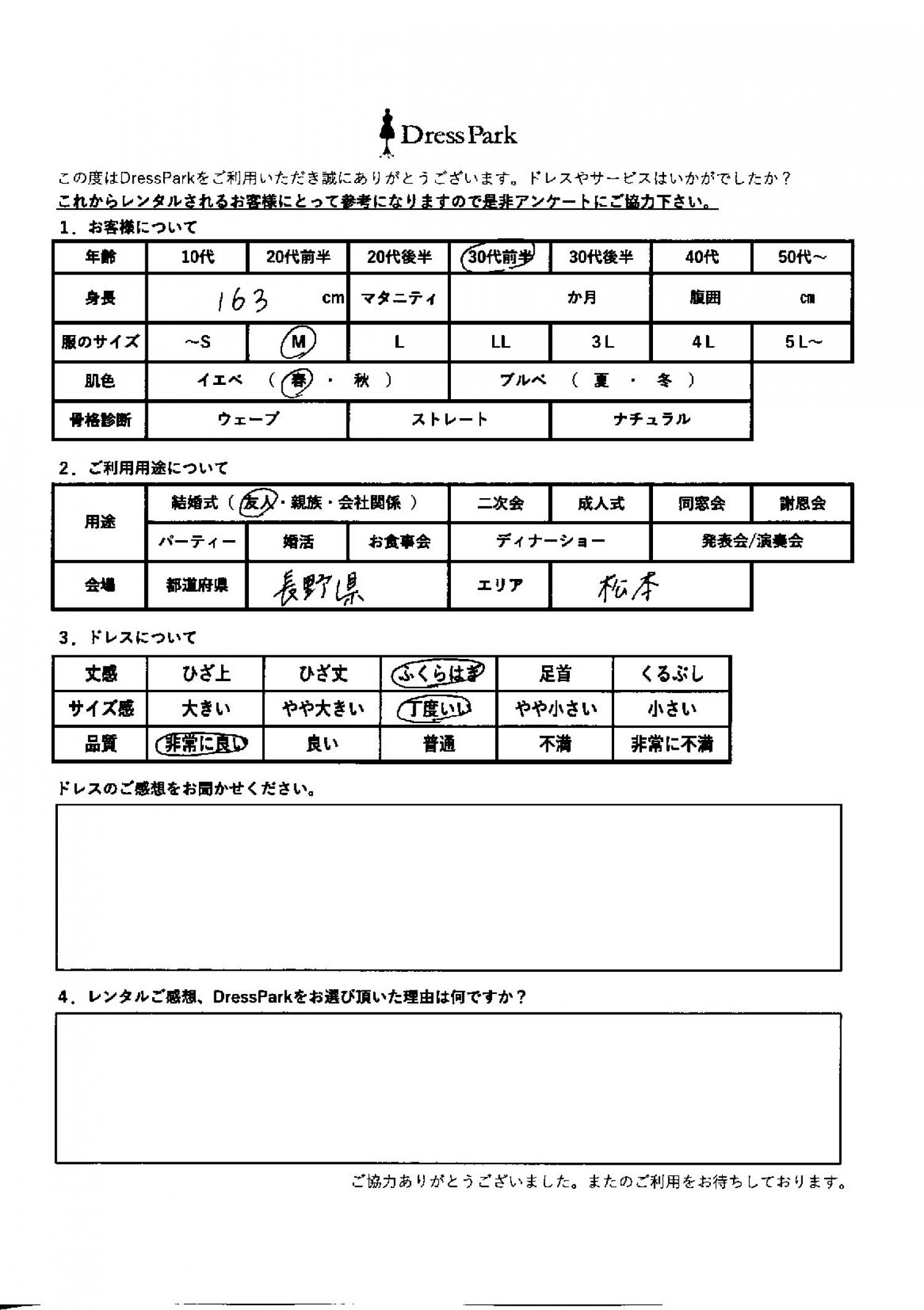 長野県 A.Y様163㎝ Mサイズ
