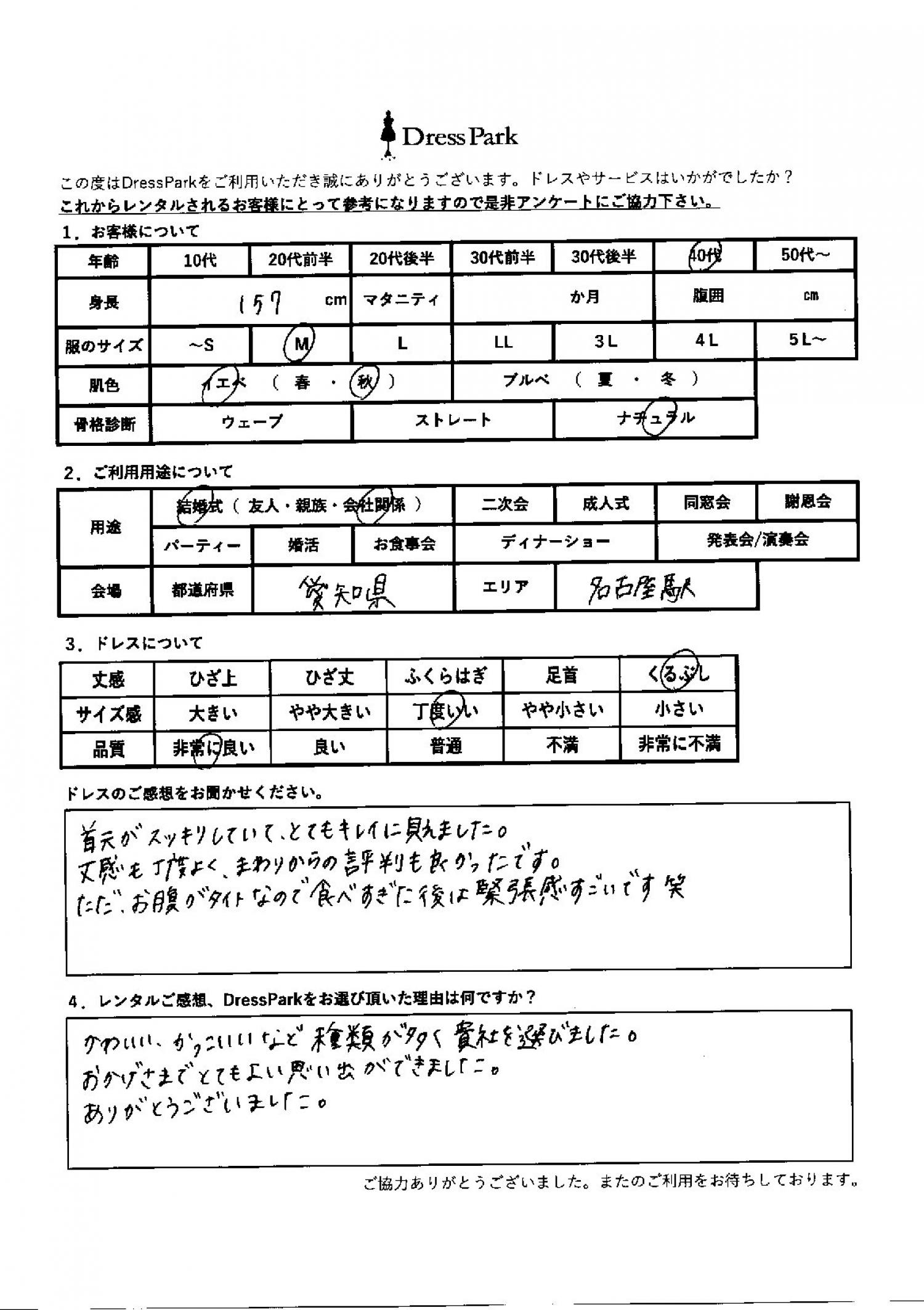 愛知県 S.W様157㎝ Mサイズ名古屋