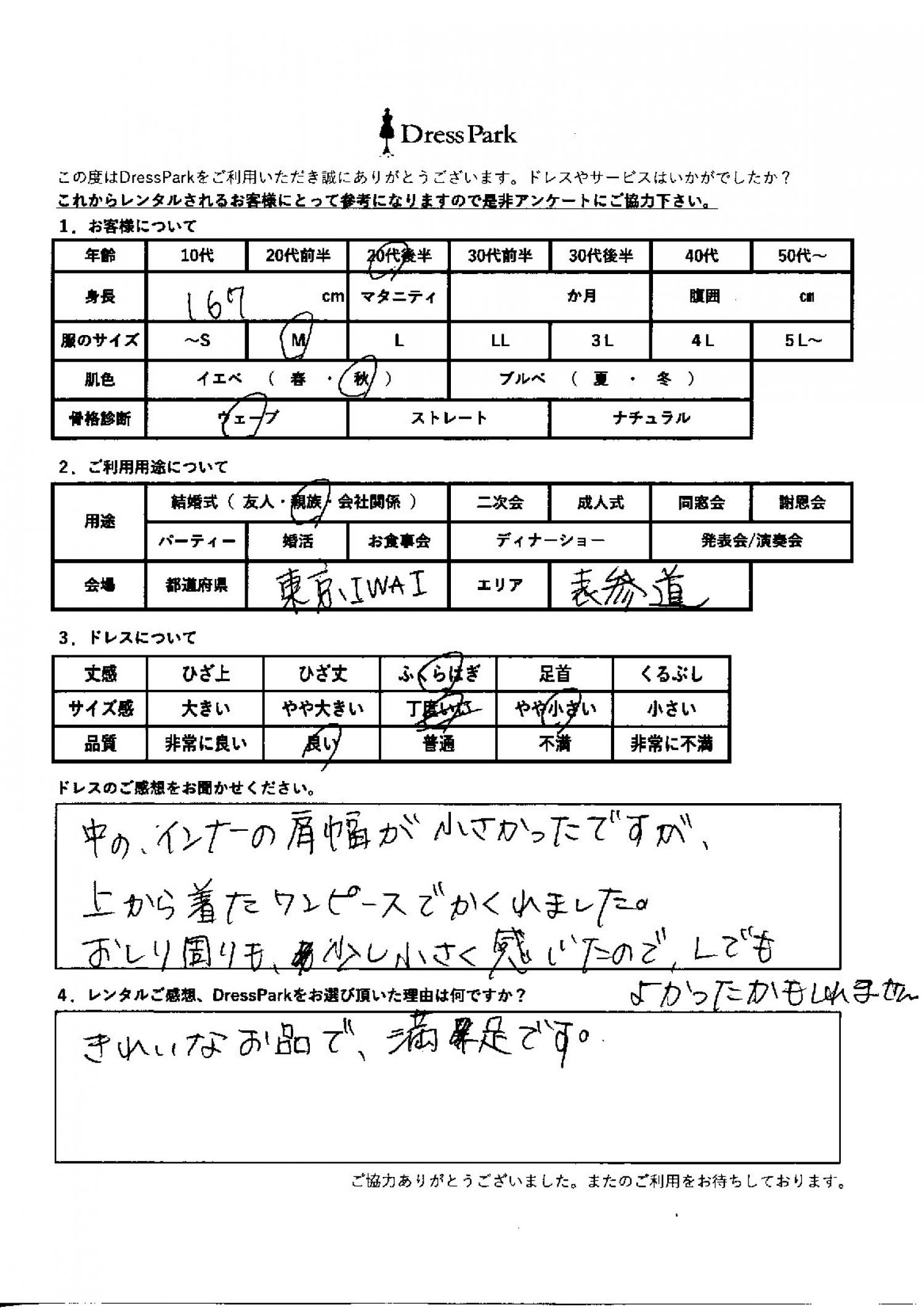 東京都 M.N様167㎝ Mサイズ青山・表参道