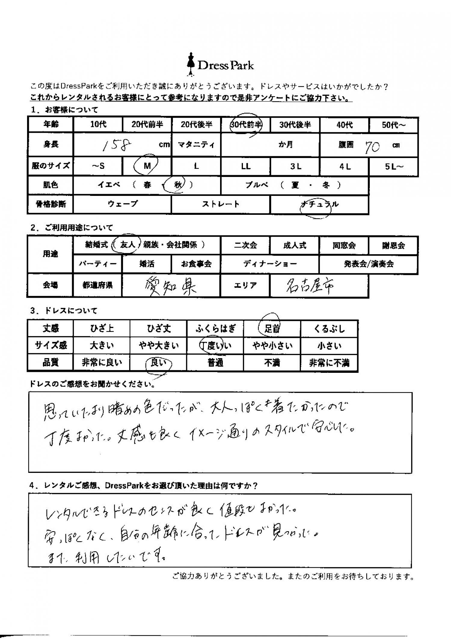 愛知県 N.I様158㎝ Mサイズ名古屋