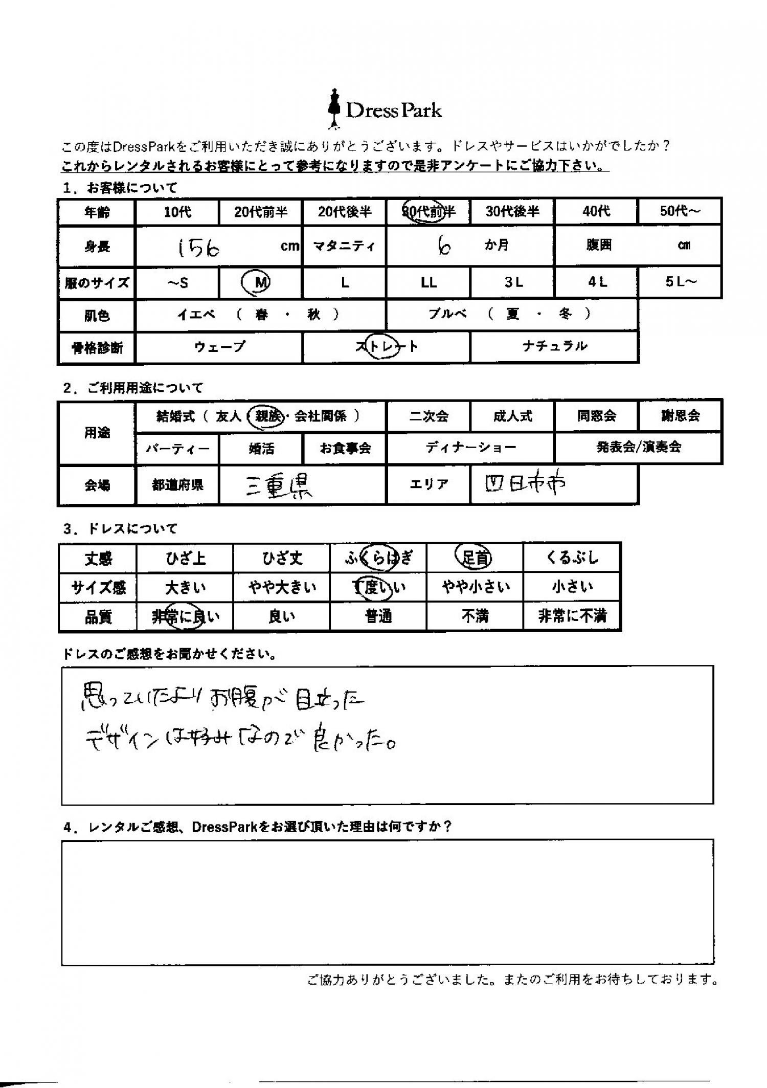 三重県 S.M様156㎝ Mサイズ マタニティ #30代#M/L#155~159㎝#結婚式(親族)#三重県 ◆レンタルしたドレスはこちら ◆レンタルしたサイズは:M ◆レンタルした日付:2026/01/30 ドレスの着用感 ◆点数: (5点) ◆丈感:足首 ◆サイズ感:丁度いい ◆品質:非常に良い ◆マタニティ:6ヶ月 ◆骨格診断:ストレート ドレスの感想 思っていたよりお腹が目立った。デザインは好みなのでよかった。 CUSTOMER REVIEWS お客様の声 気になるカテゴリー別にご利用の感想をチェック! ◆AGE 年代で見る 10代 20代 30代 40代 50代~ ◆SIZE サイズで見る SS/S M/L 大きいサイズLL~ ◆HIGHT 身長で見る 140~149㎝ 150~154㎝ 155~159㎝ 160~164㎝ 165~169㎝ 170㎝以上 ◆マタニティ ~3か月 4~6か月 7~8か月 9~10か月 ◆肌色 イエベ ブルべ ◆骨格診断 ウェーブ ストレート ナチュラル ◆利用シーン 結婚式(友人) 結婚式(親族) 結婚式(会社関係) 二次会 成人式/同窓会 謝恩会 パーティー その他 CUSTOMER REVIEWS都道府県別お客様の声 都道府県別にのお客様の声をチェック! 北海道 青森県 岩手県 宮城県 秋田県 山形県 福島県 茨城県 栃木県 群馬県 埼玉県 千葉県 東京都 神奈川県 新潟県 富山県 石川県 福井県 山梨県 長野県 岐阜県 静岡県 愛知県 三重県 滋賀県 京都府 大阪府 兵庫県 奈良県 和歌山県 鳥取県 島根県 岡山県 広島県 山口県 徳島県 香川県 愛媛県 高知県 福岡県 佐賀県 長崎県 熊本県 大分県 宮崎県 鹿児島県 沖縄県 CUSTOMER REVIEWSエリア別お客様の声 都道府県別にのお客様の声をチェック! 札幌 仙台 名古屋 軽井沢 金沢 神戸・芦屋 博多 那覇 梅田・新大阪 難波・心斎橋 鎌倉・湘南 横浜・みなとみらい 舞浜・浦安・幕張 大宮・浦和 青山・表参道 六本木・麻布 渋谷・恵比寿 新宿 池袋 銀座・丸の内 お台場・汐留 鹿児島市 郡山市 福島市 東予 甲府・石和 LINEでお問い合わせ このサイトではJavaScriptを使用しています