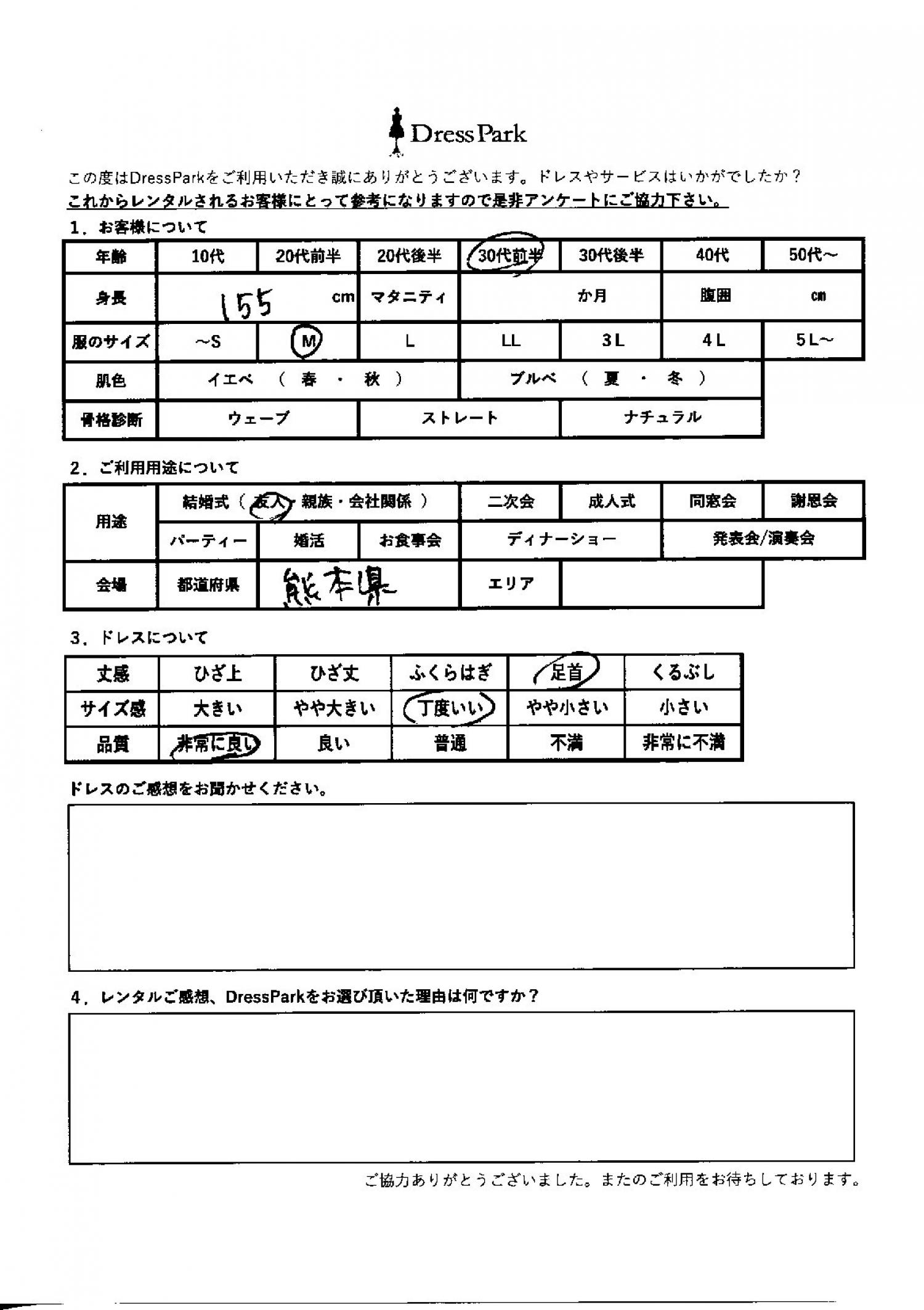 熊本県 R.T様155㎝ Mサイズ
