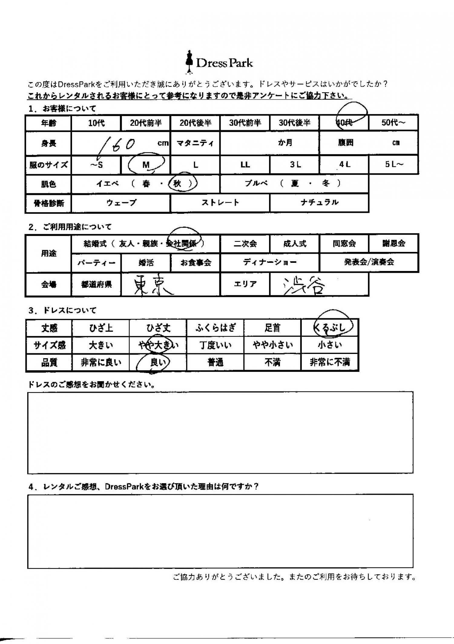 東京都 M.S様160㎝ Mサイズ渋谷・恵比寿