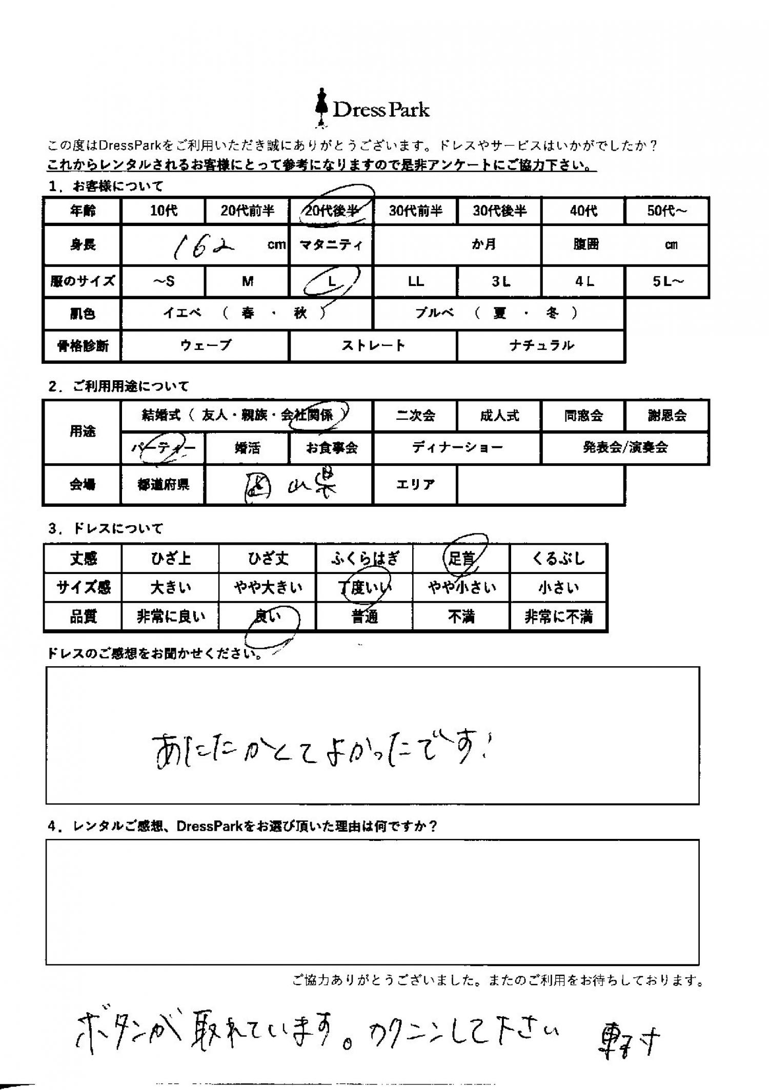 岡山県 N.H様162㎝ Lサイズ