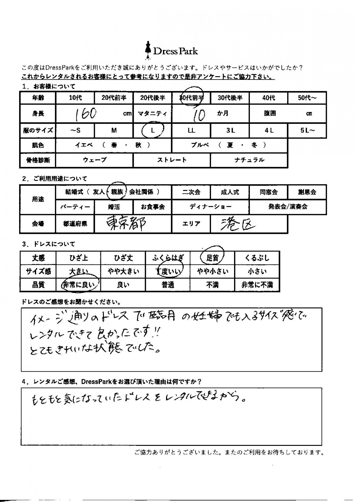 東京都 A.M様160㎝ Lサイズ渋谷・恵比寿 マタニティ