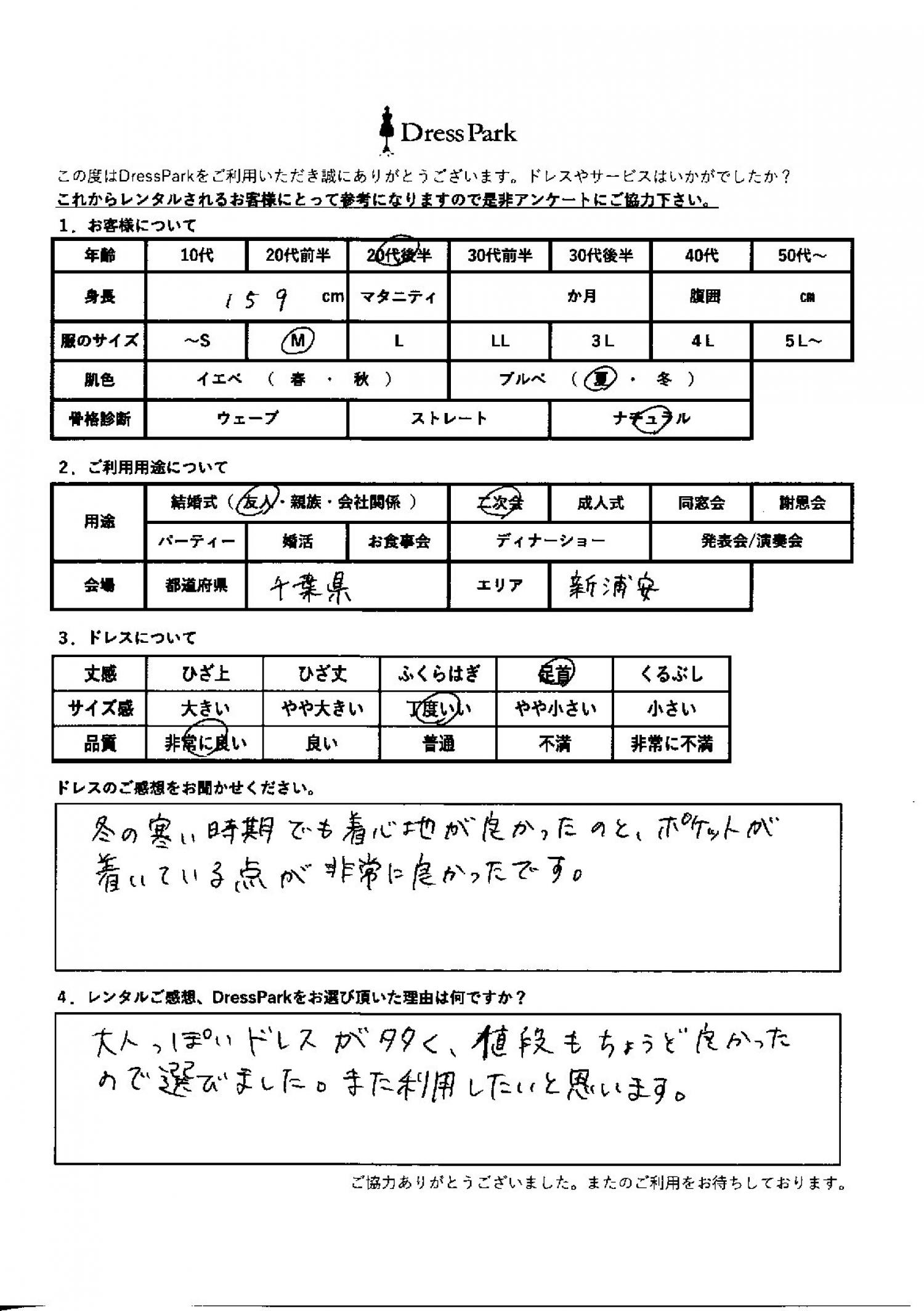 千葉県 Y.F様159㎝ Mサイズ舞浜・浦安・幕張