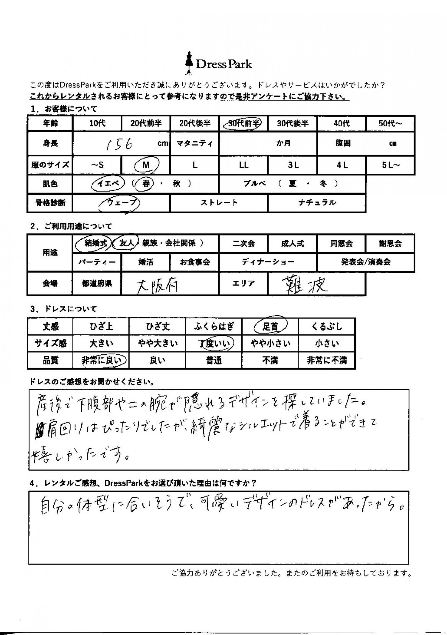 大阪府 M.H様156㎝ Mサイズ難波・心斎橋
