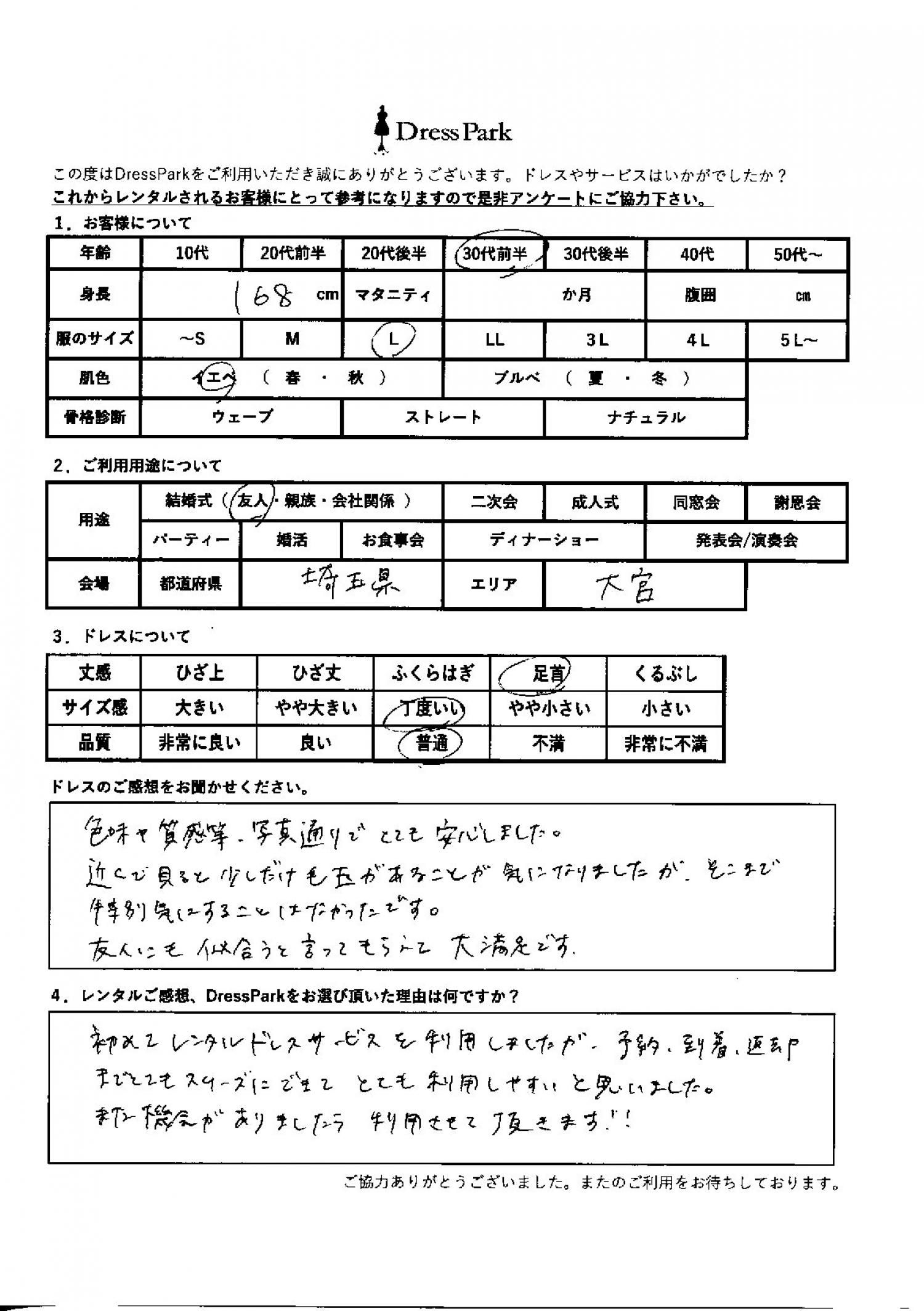 埼玉県 Y.Y様168㎝ Lサイズ大宮・浦和