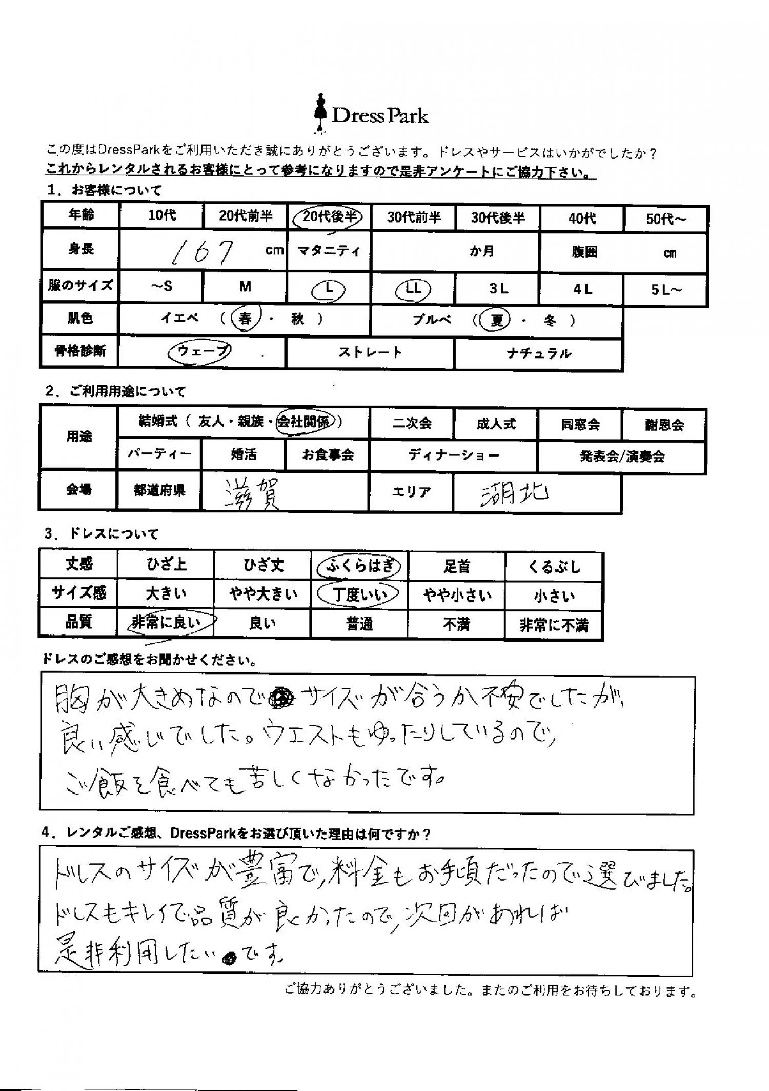 滋賀県 R.K様167㎝ Lサイズ