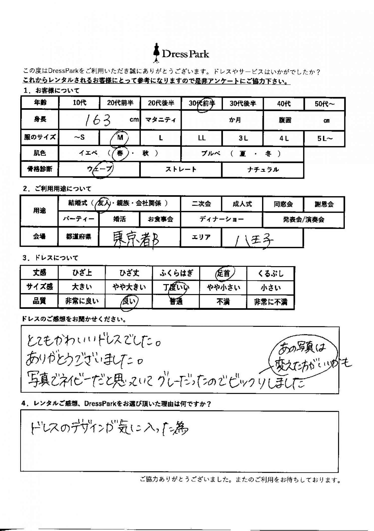 東京都 A.Y様163㎝ Mサイズ