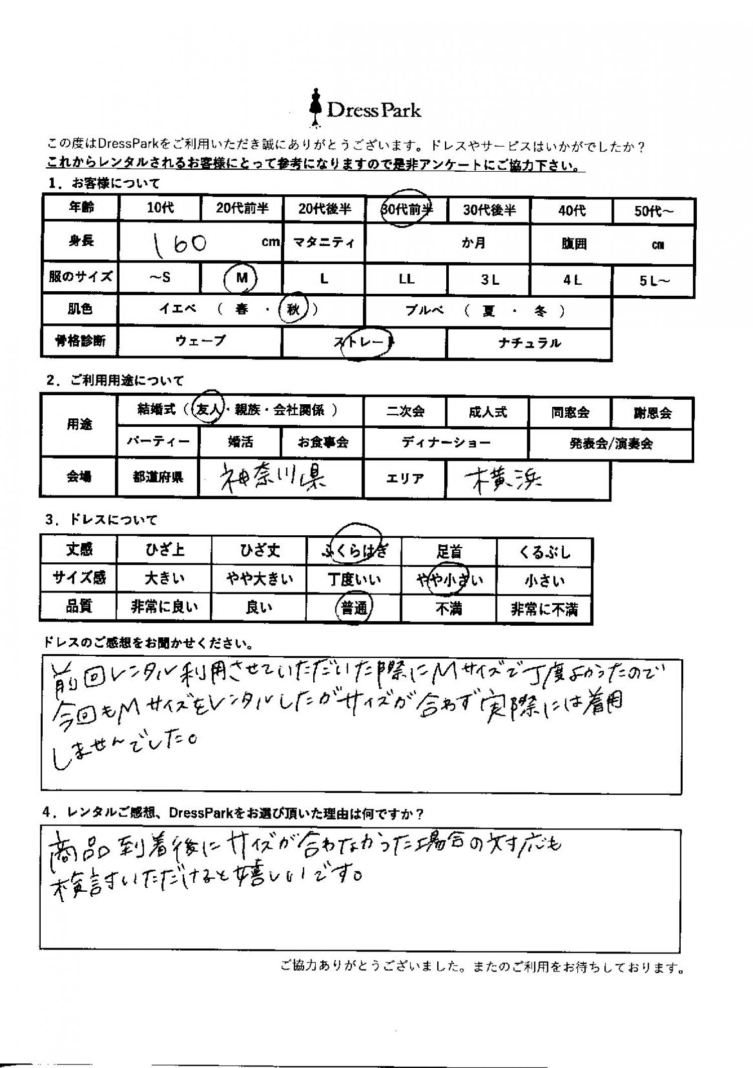 神奈川県 M.Y様160㎝ Mサイズ横浜・みなとみらい