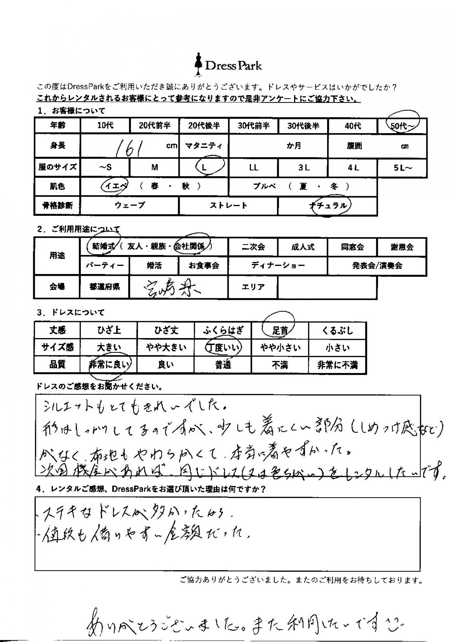 宮崎県 N.M様161㎝ Lサイズ
