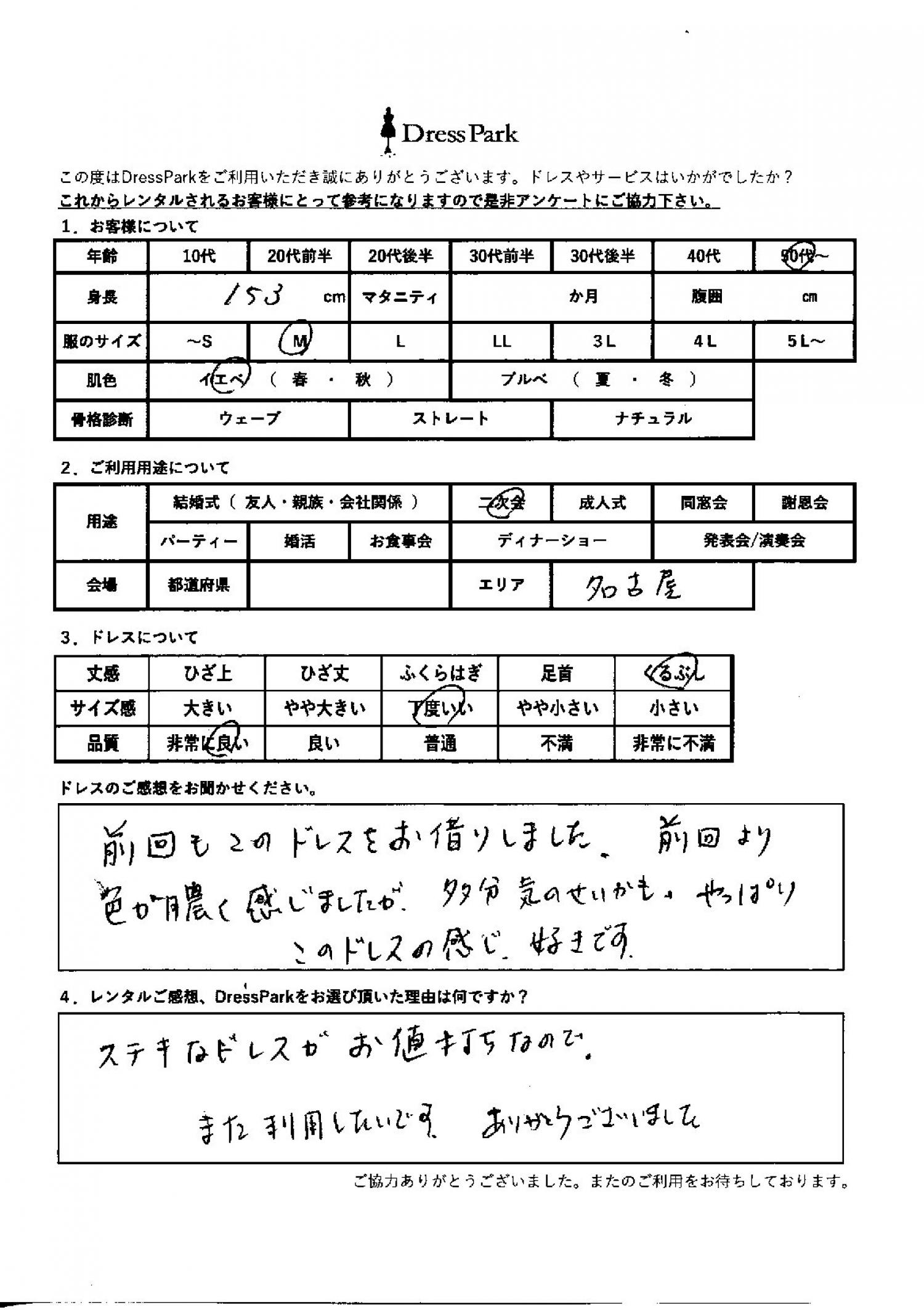 愛知県 R.F様153㎝ Mサイズ名古屋