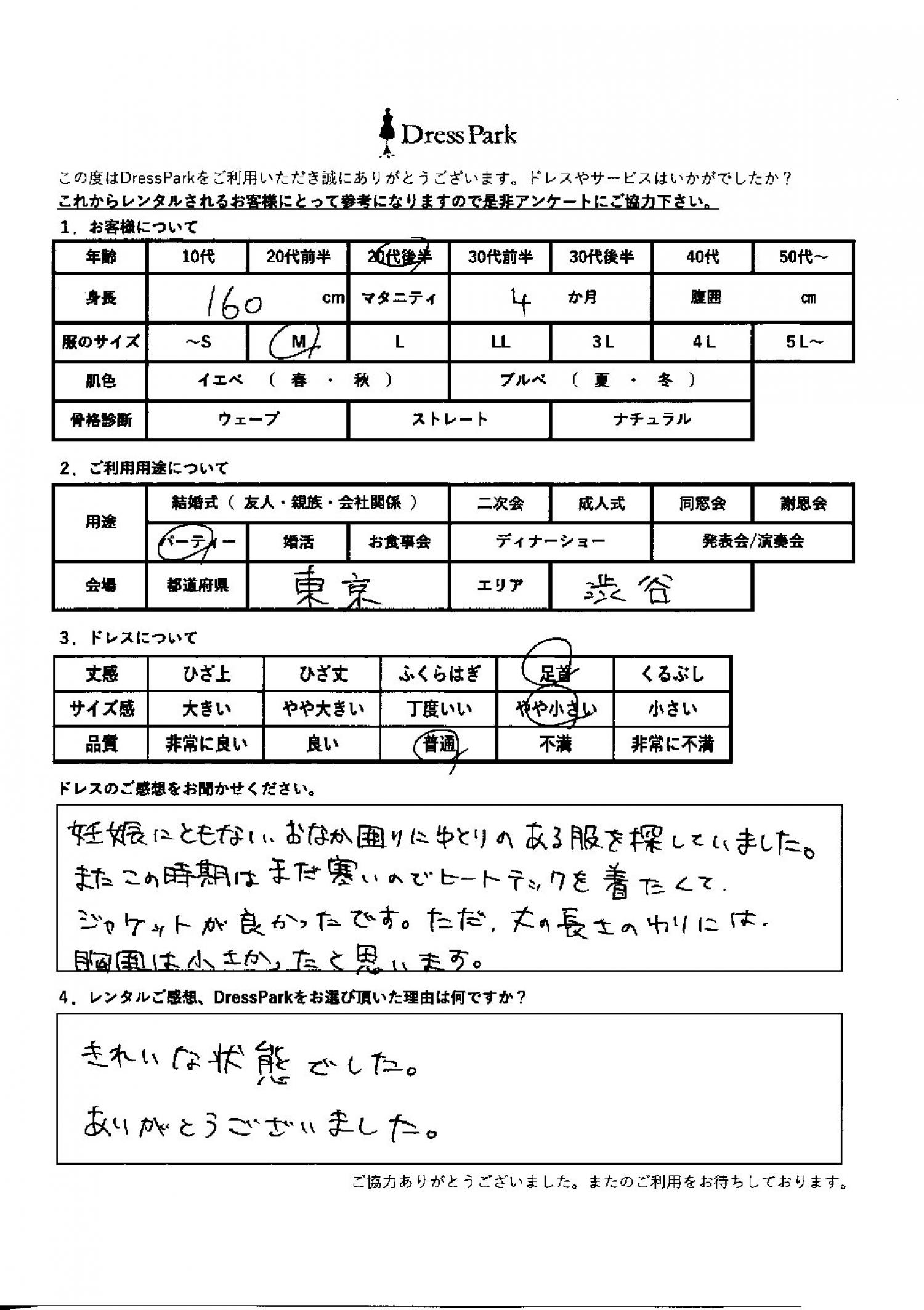 東京都 M.Y様160㎝ Mサイズ渋谷・恵比寿 マタニティ