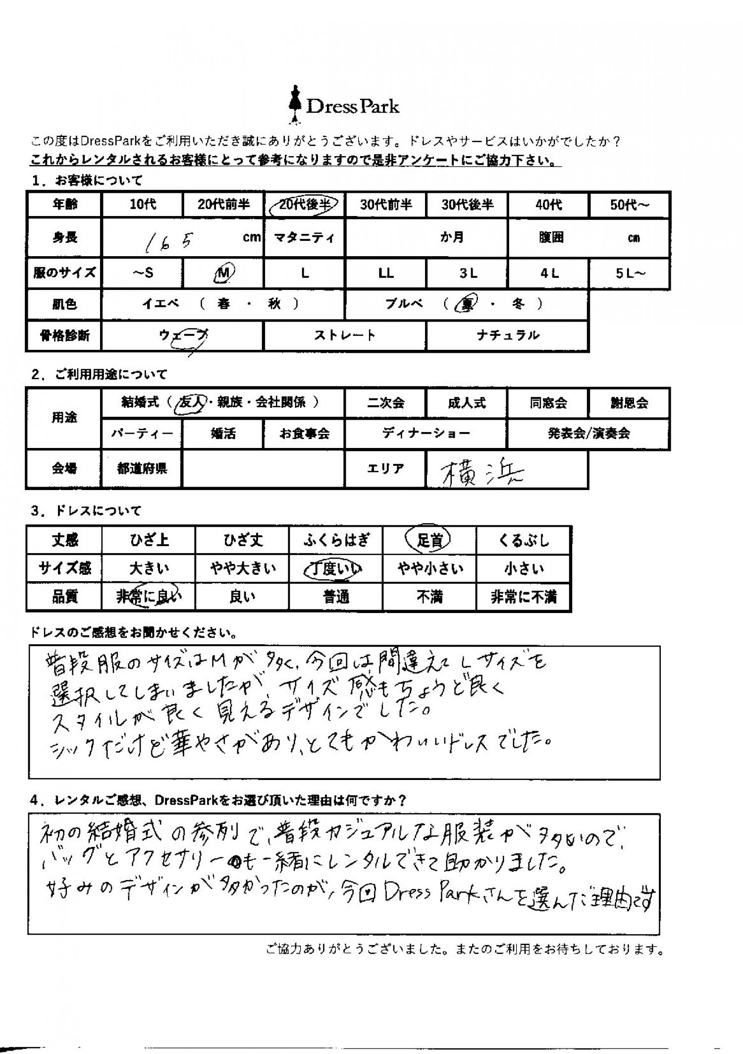 神奈川県 N.O様165㎝ Mサイズ横浜・みなとみらい
