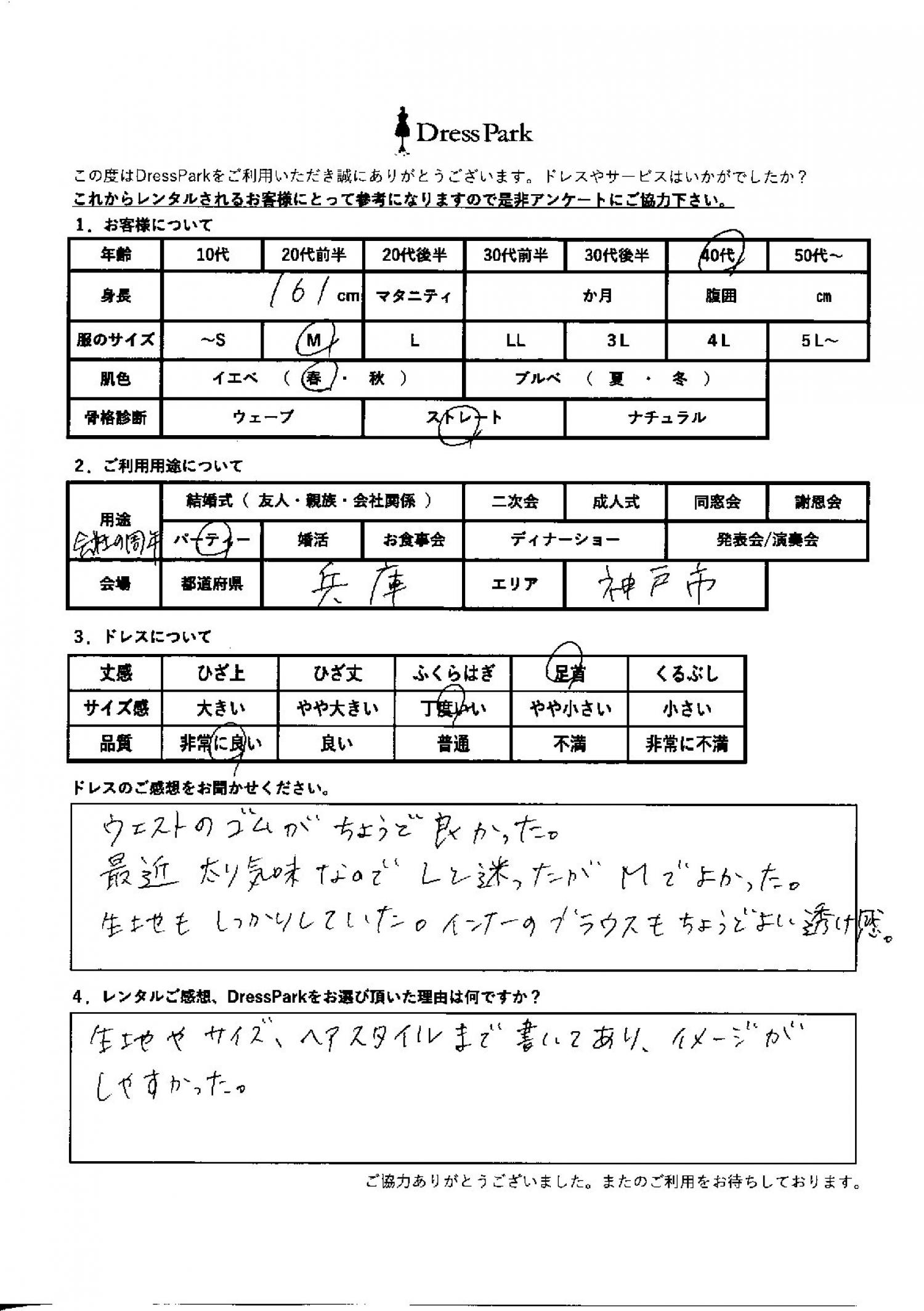 兵庫県 A.I様161㎝ Mサイズ神戸・芦屋