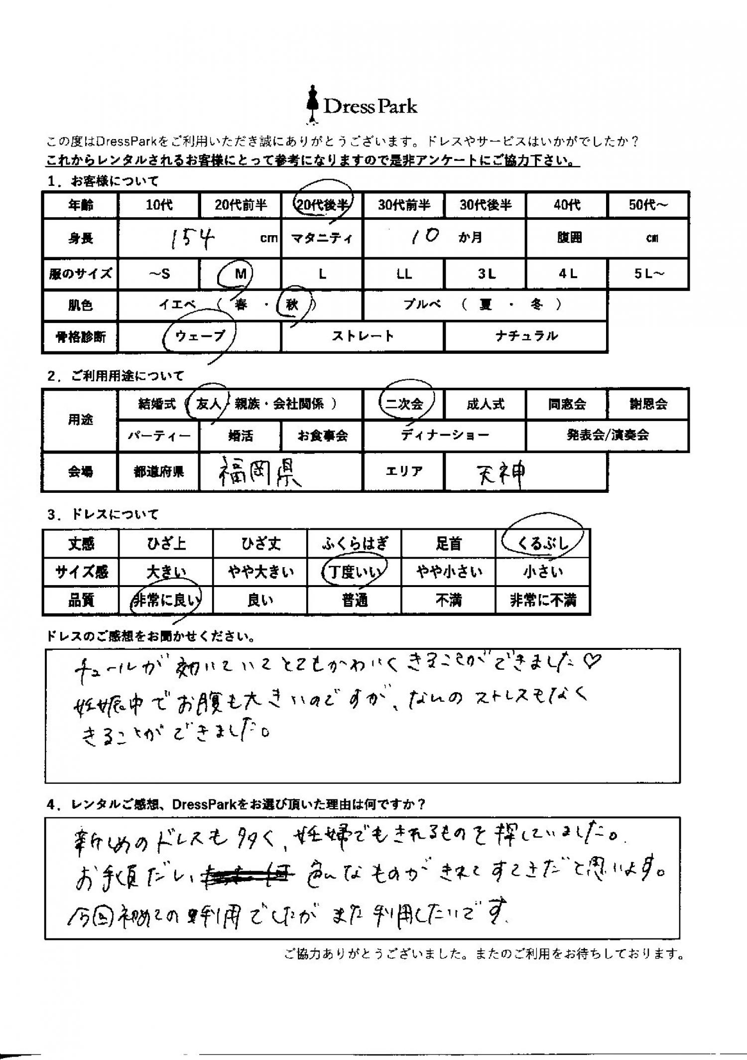福岡県 Y.H様154㎝ Mサイズ マタニティ