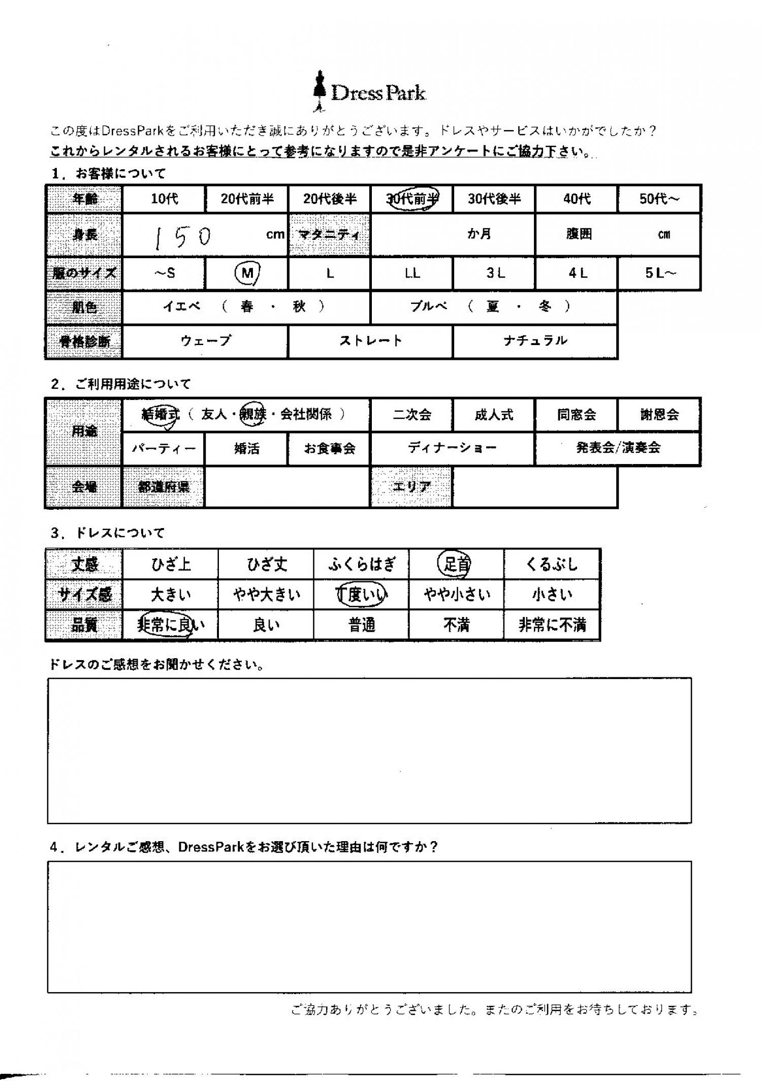 大阪府 A.I様150㎝ Mサイズ