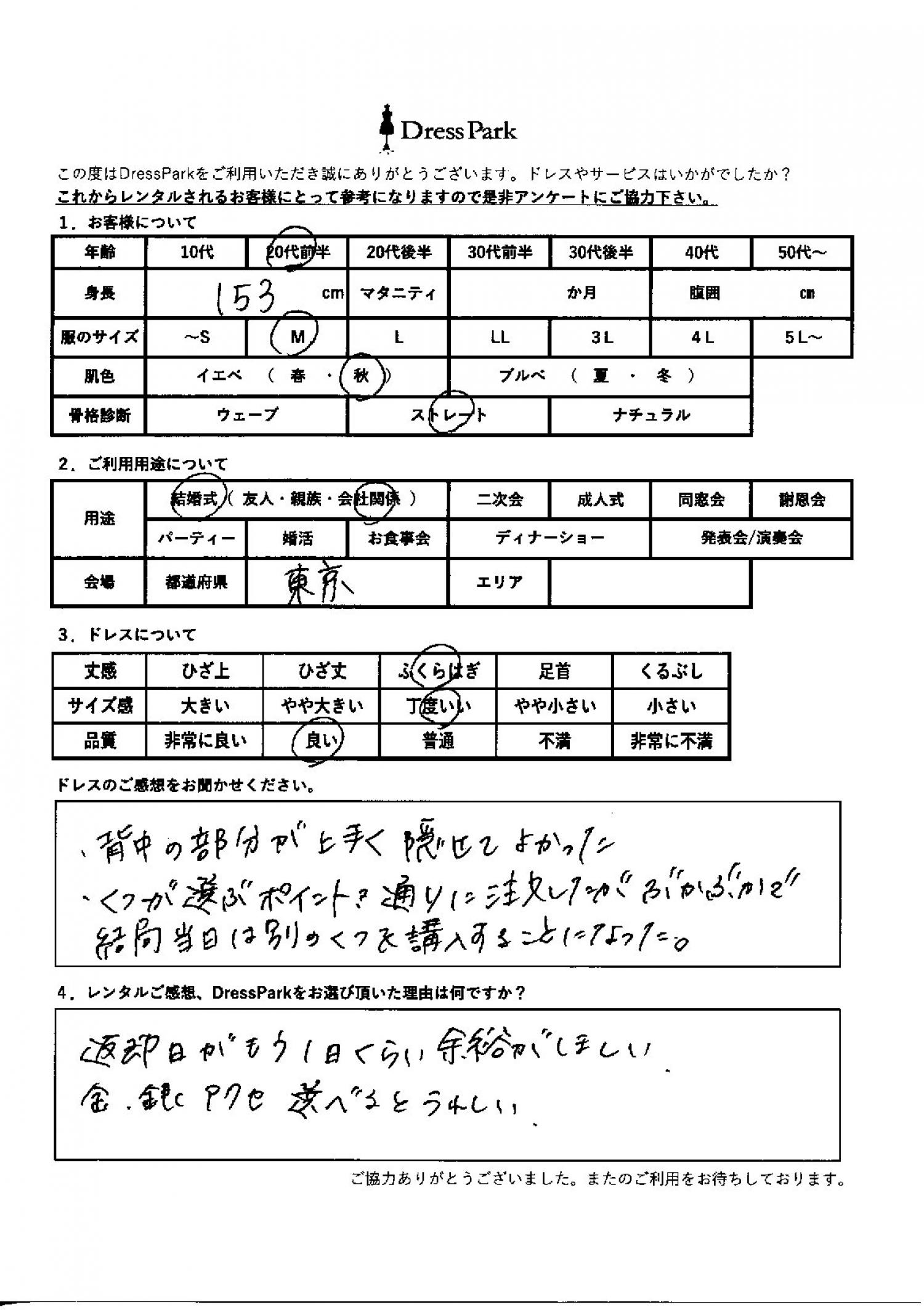 背中の部分がうまく隠せてよかった。靴が選ぶポイント?通りに注文したが、ぶかぶかで、結局当日は別の靴を購入することになった。レンタルのご感想、