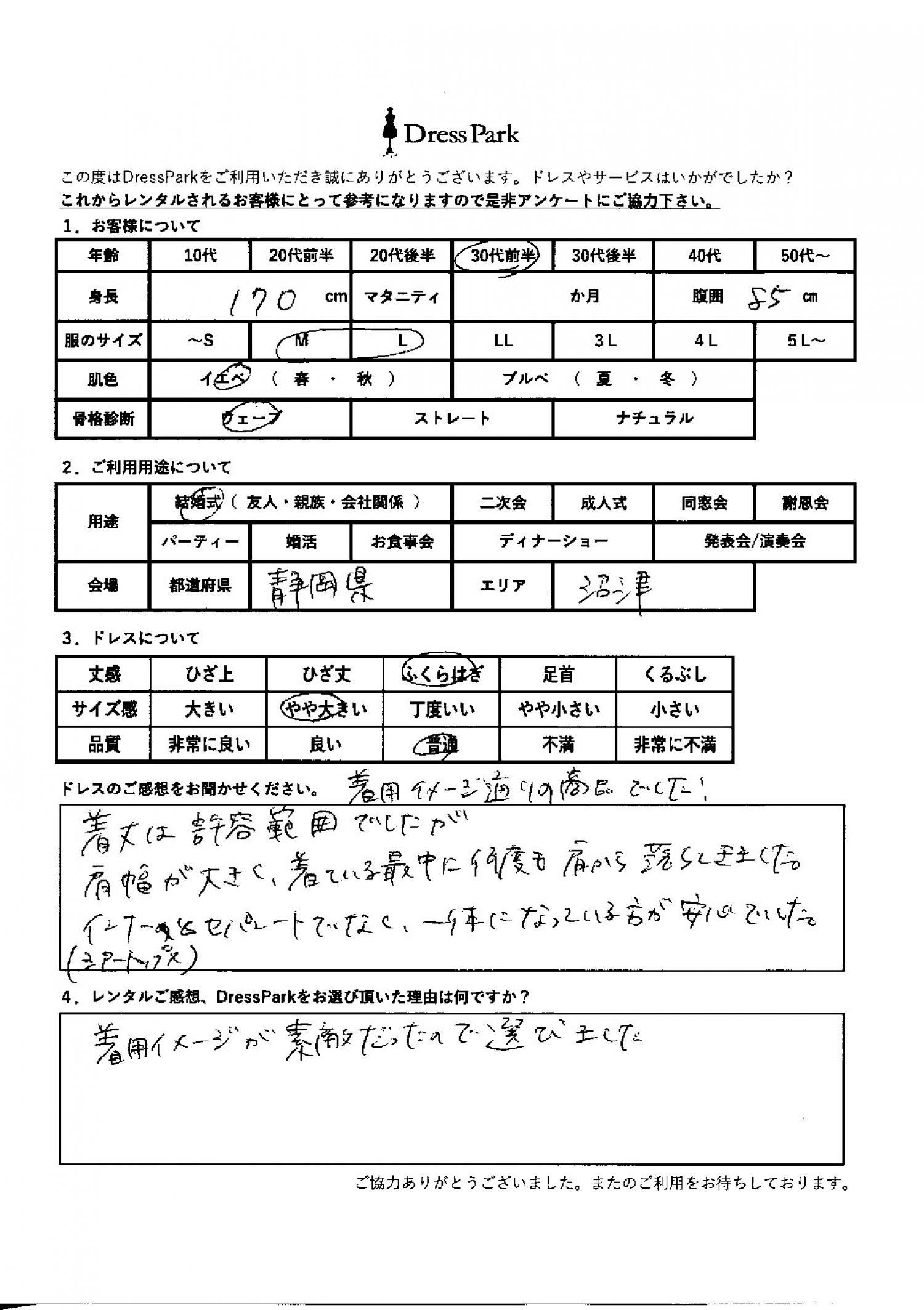 静岡県 Y.K様170㎝ Mサイズ