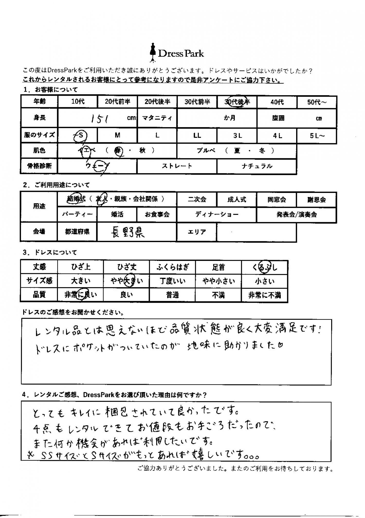 長野県 A.U様151㎝ ~Sサイズ