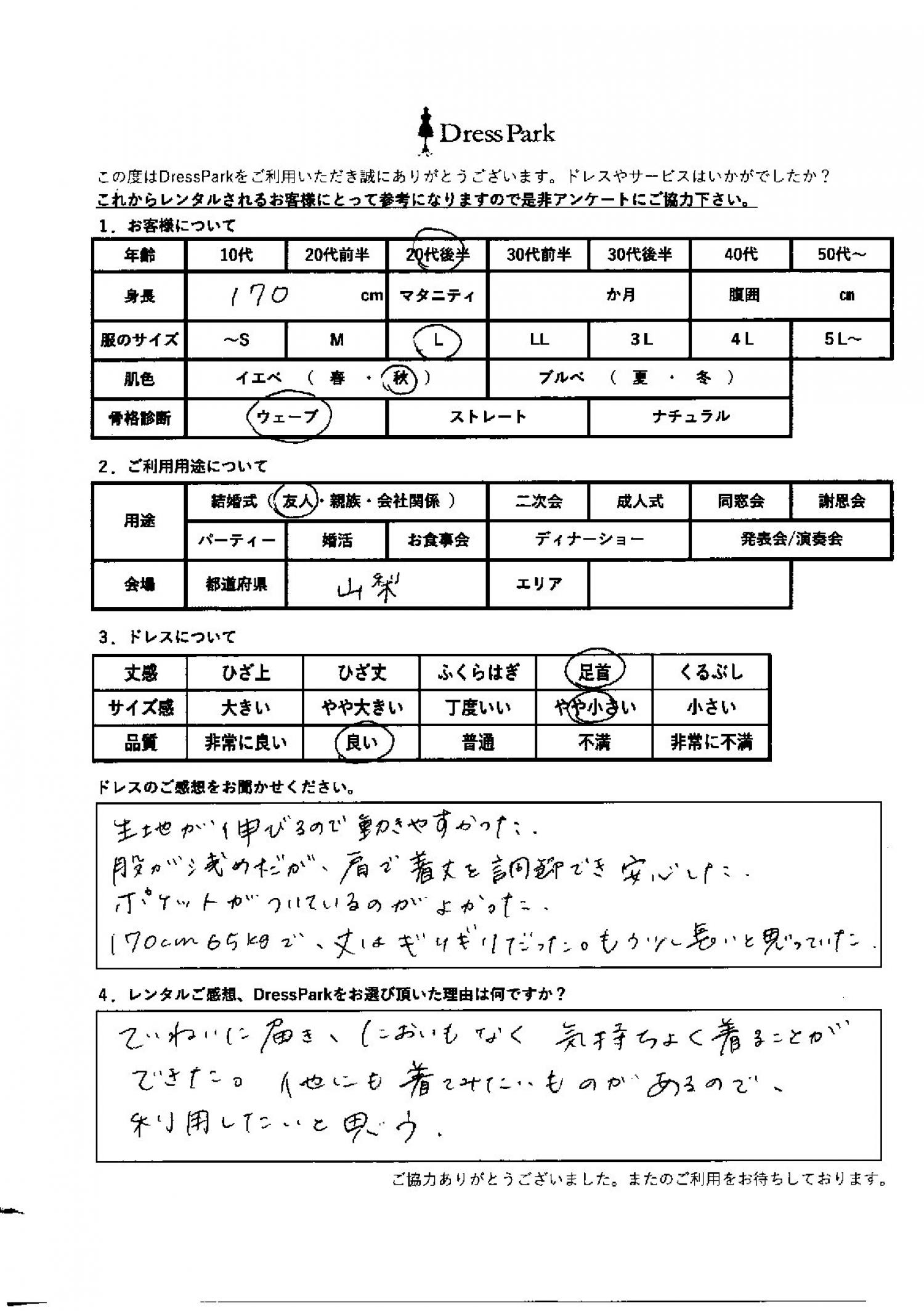 山梨県 M.K様170㎝ Lサイズ