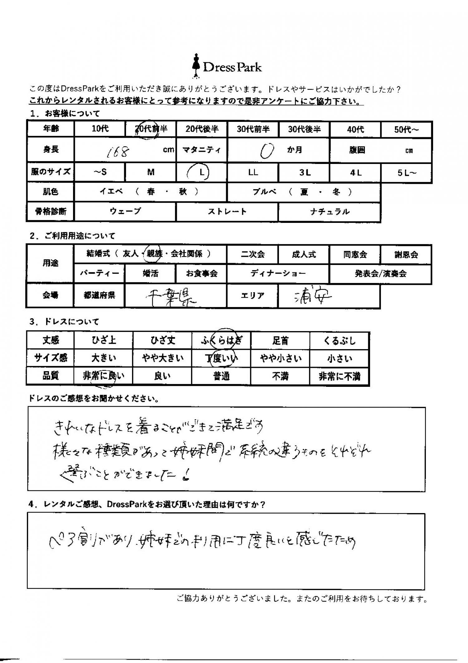 千葉県 Y.D様168㎝ Lサイズ舞浜・浦安・幕張