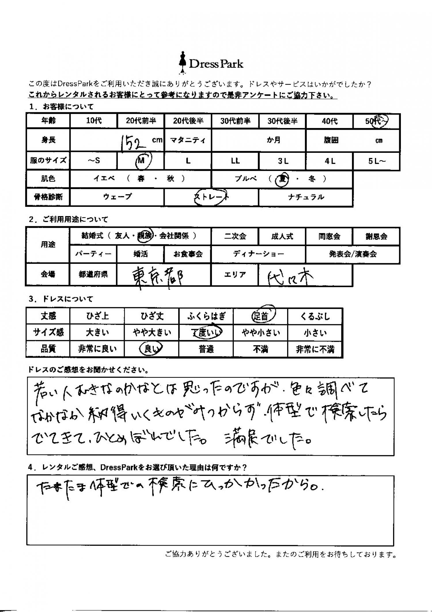 東京都 K.S様152㎝ Mサイズ渋谷・恵比寿
