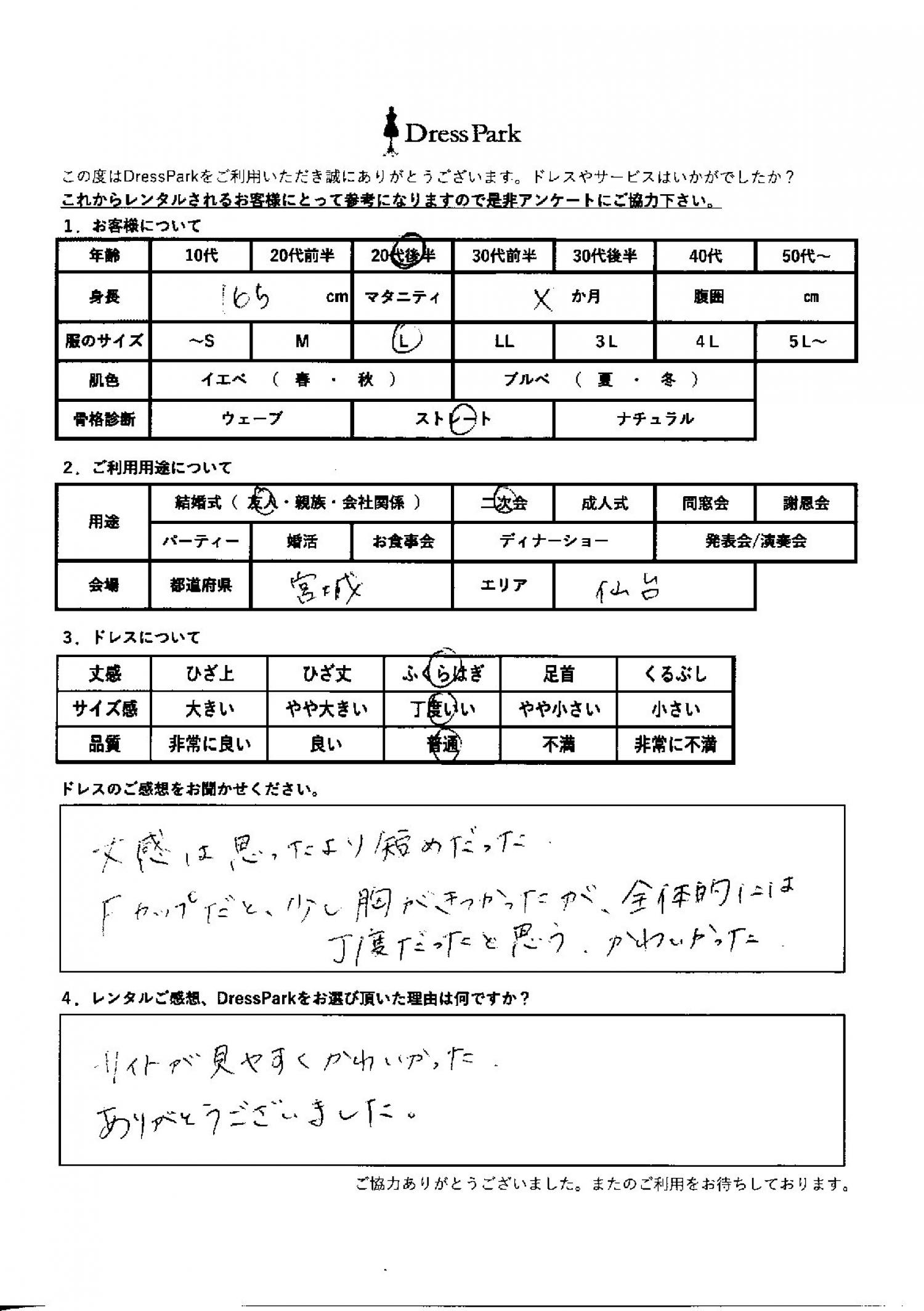 宮城県 N.S様165㎝ Lサイズ仙台