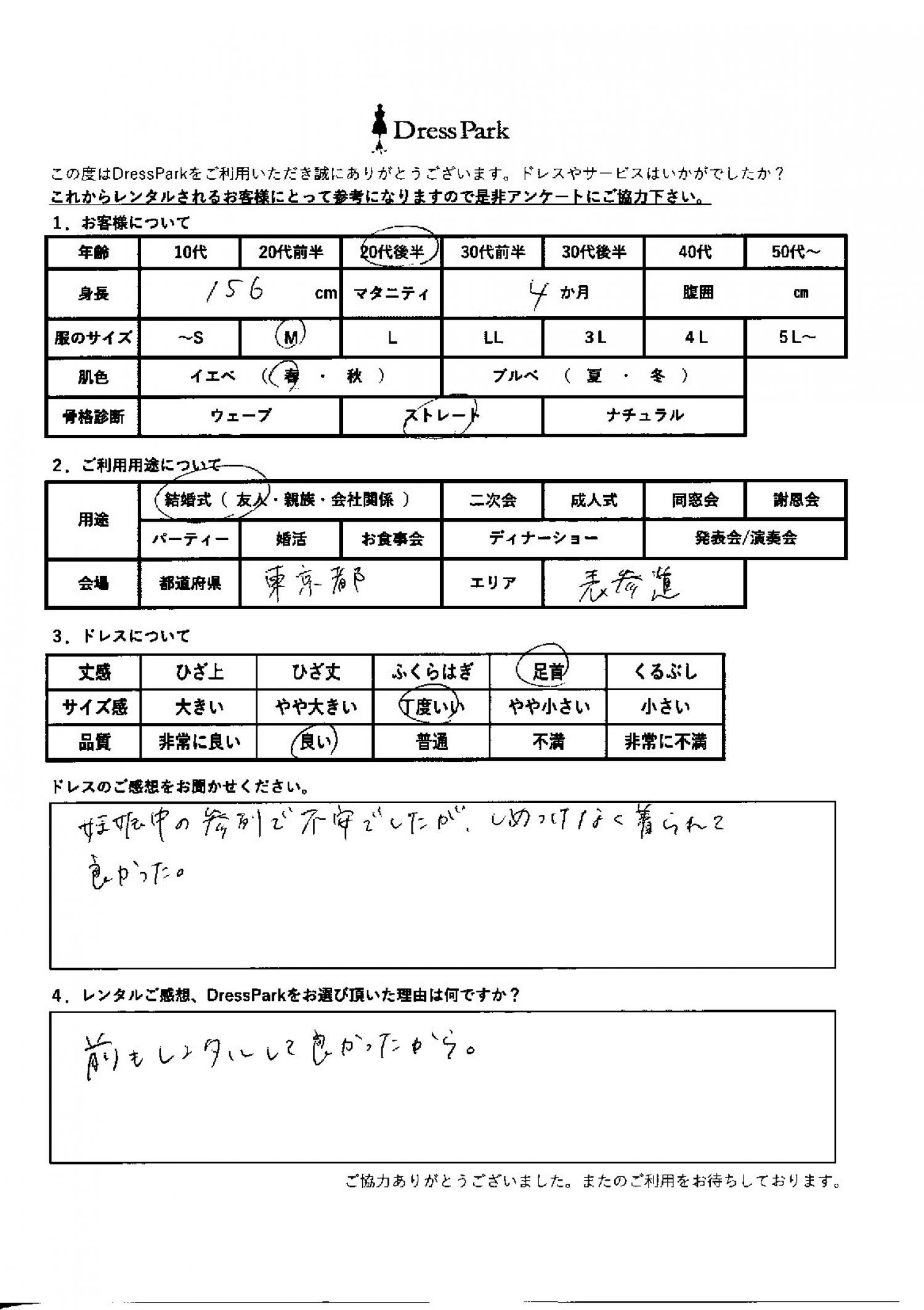 東京都 S.M様156㎝ Mサイズ青山・表参道 マタニティ #20代#M/L#155~159㎝#結婚式(友人)#東京都#青山・表参道 ◆レンタルしたドレスはこちら ◆レンタルしたサイズは:M ◆レンタルした日付:2026/03/14 ドレスの着用感 ◆点数: (4点) ◆丈感:足首 ◆サイズ感:丁度いい ◆品質:良い ◆マタニティ:4ヶ月 ◆肌色:イエベ ◆骨格診断:ストレート ドレスの感想 妊娠中の参列で不安でしたが、締め付けなく着られてよかった。 レンタルのご感想、DressParkをお選び頂いた理由 前もレンタルして良かったから。 CUSTOMER REVIEWS お客様の声 気になるカテゴリー別にご利用の感想をチェック! ◆AGE 年代で見る 10代 20代 30代 40代 50代~ ◆SIZE サイズで見る SS/S M/L 大きいサイズLL~ ◆HIGHT 身長で見る 140~149㎝ 150~154㎝ 155~159㎝ 160~164㎝ 165~169㎝ 170㎝以上 ◆マタニティ ~3か月 4~6か月 7~8か月 9~10か月 ◆肌色 イエベ ブルべ ◆骨格診断 ウェーブ ストレート ナチュラル ◆利用シーン 結婚式(友人) 結婚式(親族) 結婚式(会社関係) 二次会 成人式/同窓会 謝恩会 パーティー その他 CUSTOMER REVIEWS都道府県別お客様の声 都道府県別にのお客様の声をチェック! 北海道 青森県 岩手県 宮城県 秋田県 山形県 福島県 茨城県 栃木県 群馬県 埼玉県 千葉県 東京都 神奈川県 新潟県 富山県 石川県 福井県 山梨県 長野県 岐阜県 静岡県 愛知県 三重県 滋賀県 京都府 大阪府 兵庫県 奈良県 和歌山県 鳥取県 島根県 岡山県 広島県 山口県 徳島県 香川県 愛媛県 高知県 福岡県 佐賀県 長崎県 熊本県 大分県 宮崎県 鹿児島県 沖縄県 CUSTOMER REVIEWSエリア別お客様の声 都道府県別にのお客様の声をチェック! 札幌 仙台 名古屋 軽井沢 金沢 神戸・芦屋 博多 那覇 梅田・新大阪 難波・心斎橋 鎌倉・湘南 横浜・みなとみらい 舞浜・浦安・幕張 大宮・浦和 青山・表参道 六本木・麻布 渋谷・恵比寿 新宿 池袋 銀座・丸の内 お台場・汐留 鹿児島市 郡山市 福島市 東予 甲府・石和 LINEでお問い合わせ このサイトではJavaScriptを使用しています