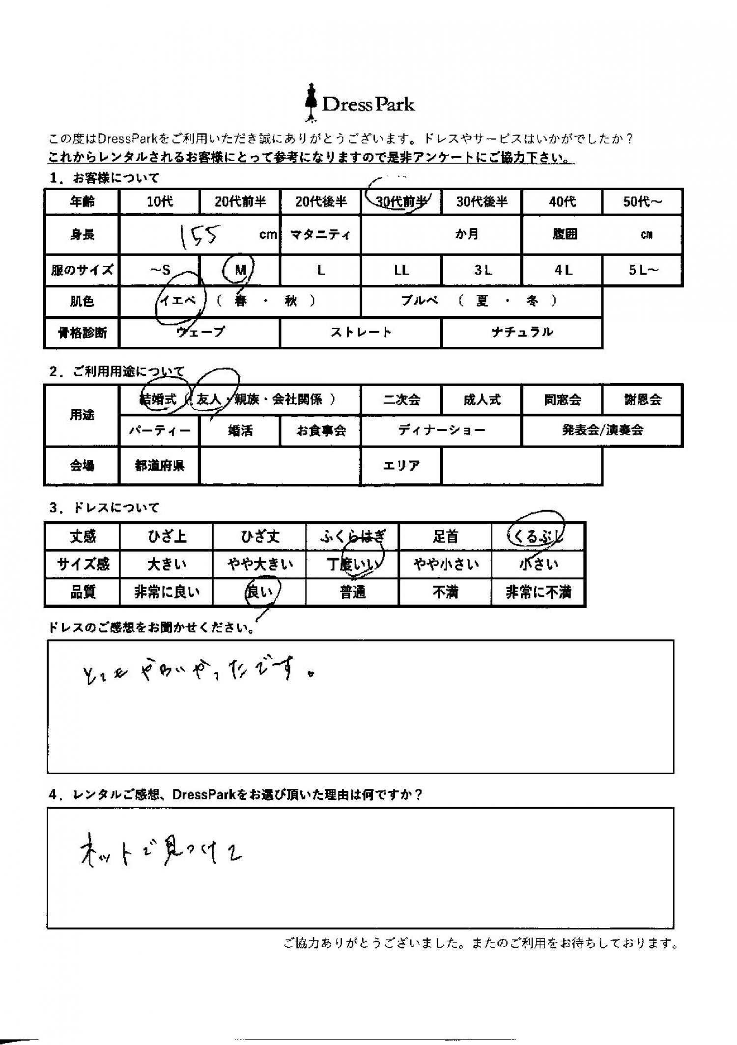 北海道 K.Y様155㎝ Mサイズ札幌 #30代#M/L#155~159㎝#結婚式(友人)#北海道#札幌 ◆レンタルしたドレスはこちら ◆レンタルしたサイズは:M ◆レンタルした日付:2026/03/12 ドレスの着用感 ◆点数: (4点) ◆丈感:くるぶし ◆サイズ感:丁度いい ◆品質:良い ◆肌色:イエベ ドレスの感想 とても可愛かったです。 レンタルのご感想、DressParkをお選び頂いた理由 ネットで見つけて CUSTOMER REVIEWS お客様の声 気になるカテゴリー別にご利用の感想をチェック! ◆AGE 年代で見る 10代 20代 30代 40代 50代~ ◆SIZE サイズで見る SS/S M/L 大きいサイズLL~ ◆HIGHT 身長で見る 140~149㎝ 150~154㎝ 155~159㎝ 160~164㎝ 165~169㎝ 170㎝以上 ◆マタニティ ~3か月 4~6か月 7~8か月 9~10か月 ◆肌色 イエベ ブルべ ◆骨格診断 ウェーブ ストレート ナチュラル ◆利用シーン 結婚式(友人) 結婚式(親族) 結婚式(会社関係) 二次会 成人式/同窓会 謝恩会 パーティー その他 CUSTOMER REVIEWS都道府県別お客様の声 都道府県別にのお客様の声をチェック! 北海道 青森県 岩手県 宮城県 秋田県 山形県 福島県 茨城県 栃木県 群馬県 埼玉県 千葉県 東京都 神奈川県 新潟県 富山県 石川県 福井県 山梨県 長野県 岐阜県 静岡県 愛知県 三重県 滋賀県 京都府 大阪府 兵庫県 奈良県 和歌山県 鳥取県 島根県 岡山県 広島県 山口県 徳島県 香川県 愛媛県 高知県 福岡県 佐賀県 長崎県 熊本県 大分県 宮崎県 鹿児島県 沖縄県 CUSTOMER REVIEWSエリア別お客様の声 都道府県別にのお客様の声をチェック! 札幌 仙台 名古屋 軽井沢 金沢 神戸・芦屋 博多 那覇 梅田・新大阪 難波・心斎橋 鎌倉・湘南 横浜・みなとみらい 舞浜・浦安・幕張 大宮・浦和 青山・表参道 六本木・麻布 渋谷・恵比寿 新宿 池袋 銀座・丸の内 お台場・汐留 鹿児島市 郡山市 福島市 東予 甲府・石和 LINEでお問い合わせ このサイトではJavaScriptを使用しています