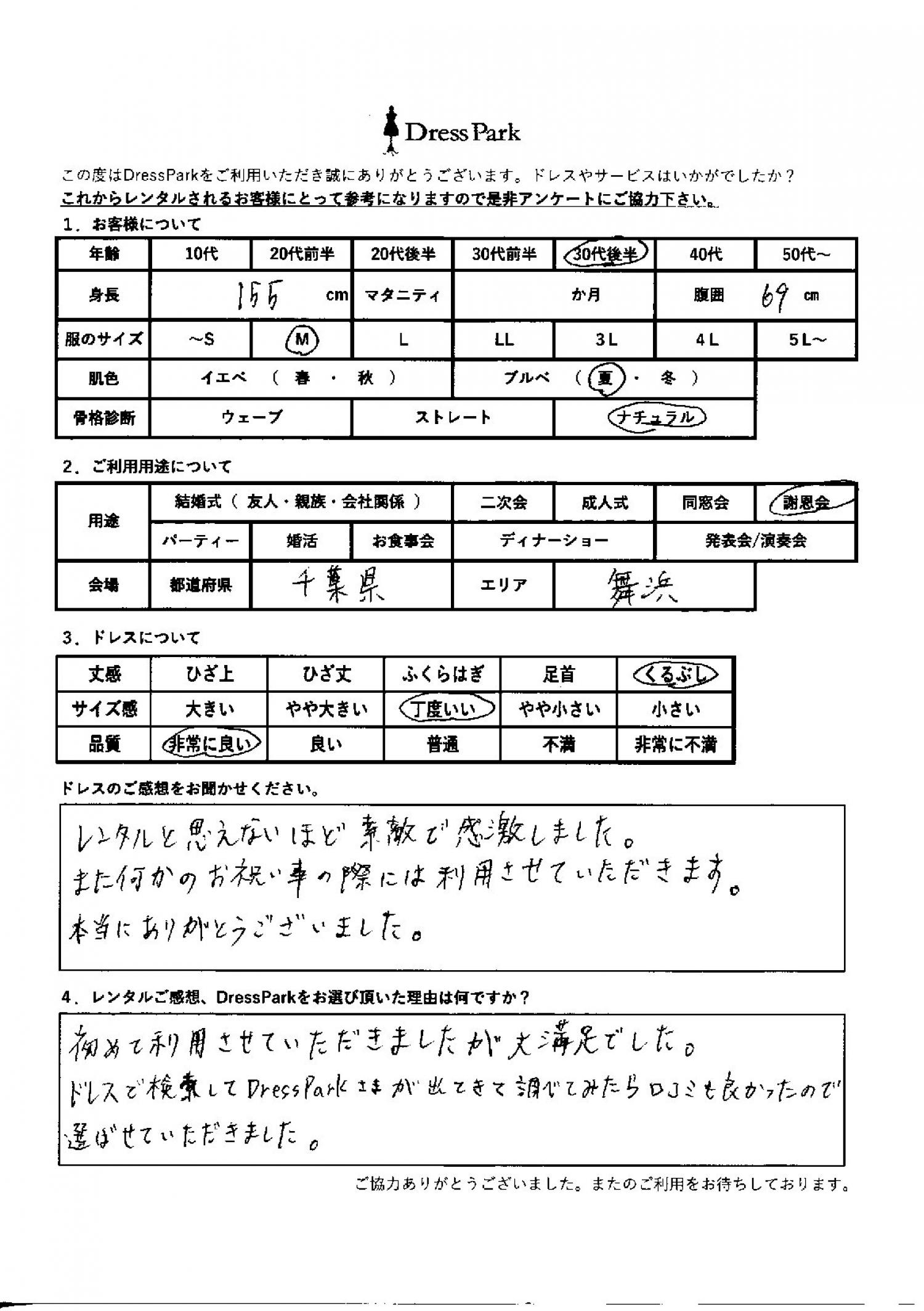 千葉県 H.T様155㎝ Mサイズ舞浜・浦安・幕張
