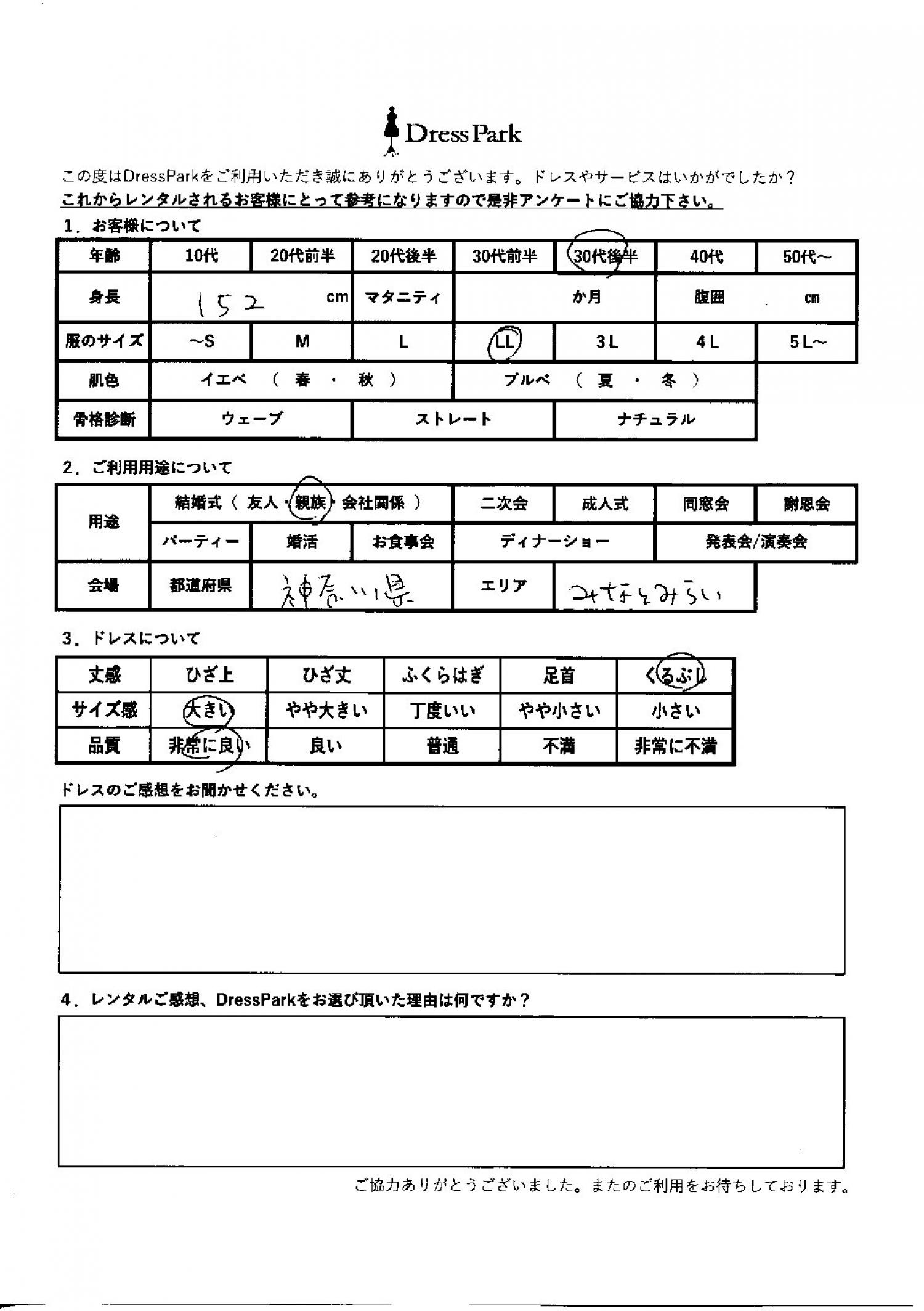 神奈川県 S.M様152㎝ LLサイズ横浜・みなとみらい