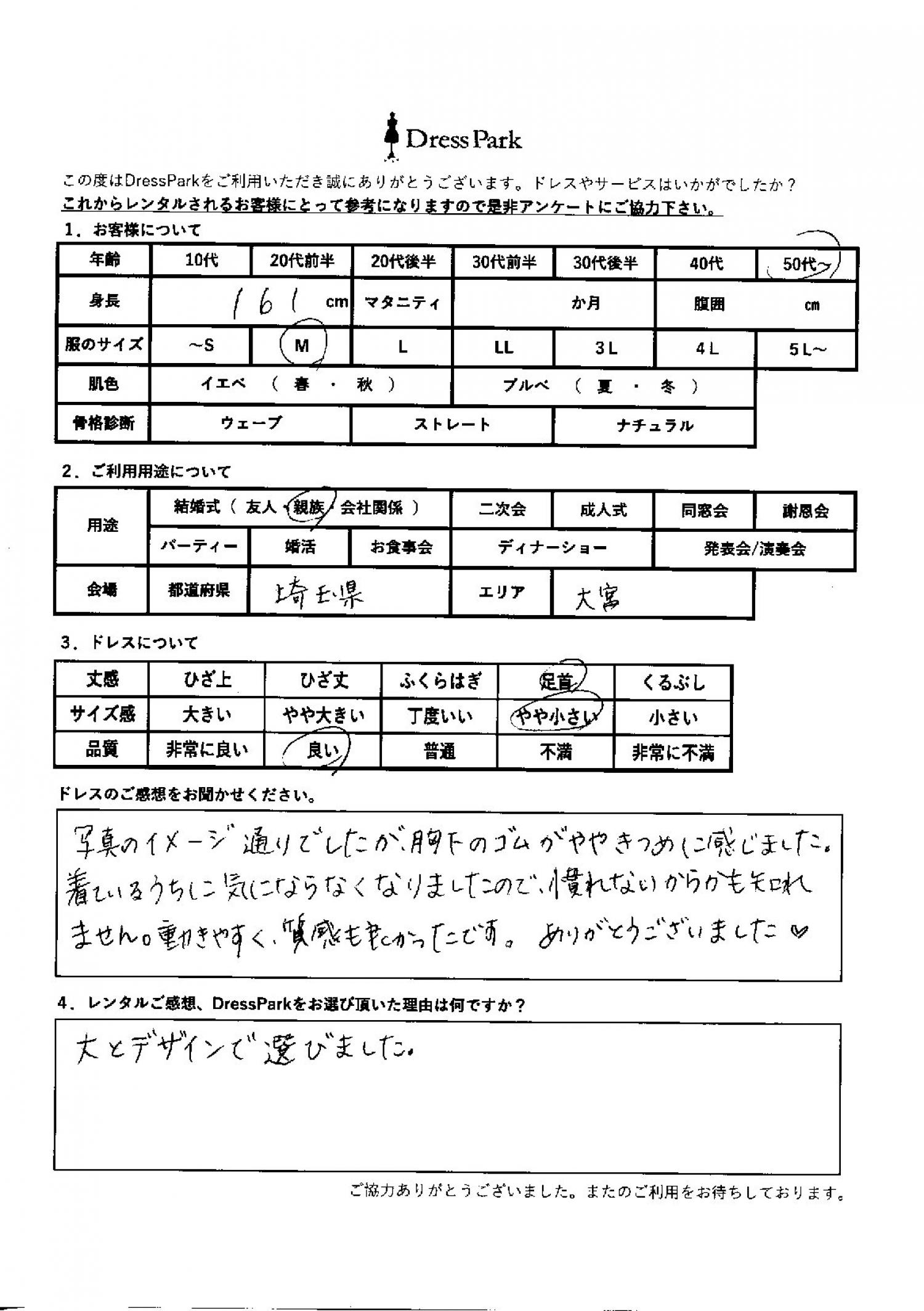 埼玉県 E.K様161㎝ Mサイズ大宮・浦和