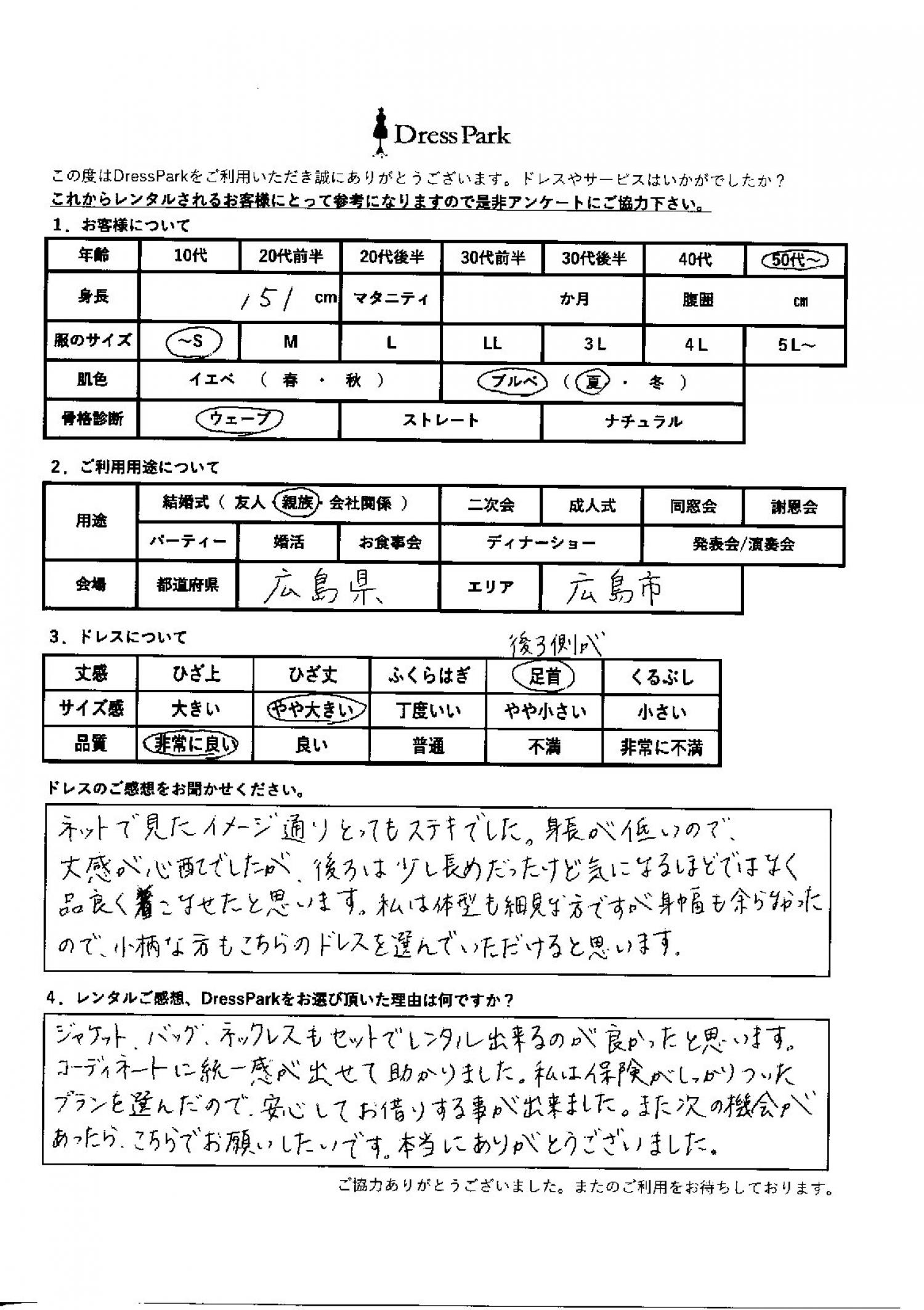 広島県 J.E様151㎝ ~Sサイズ