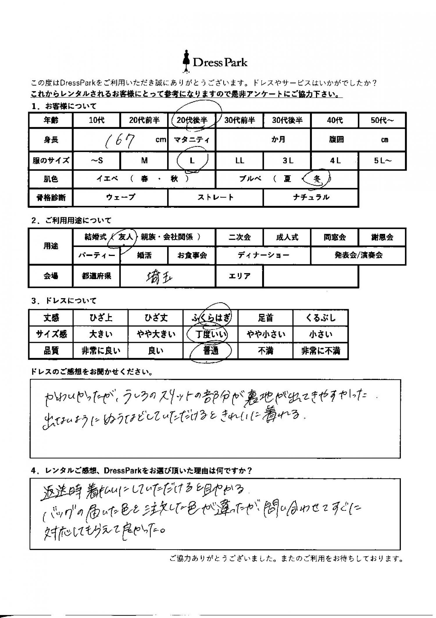 埼玉県 Y.K様167㎝ Lサイズ