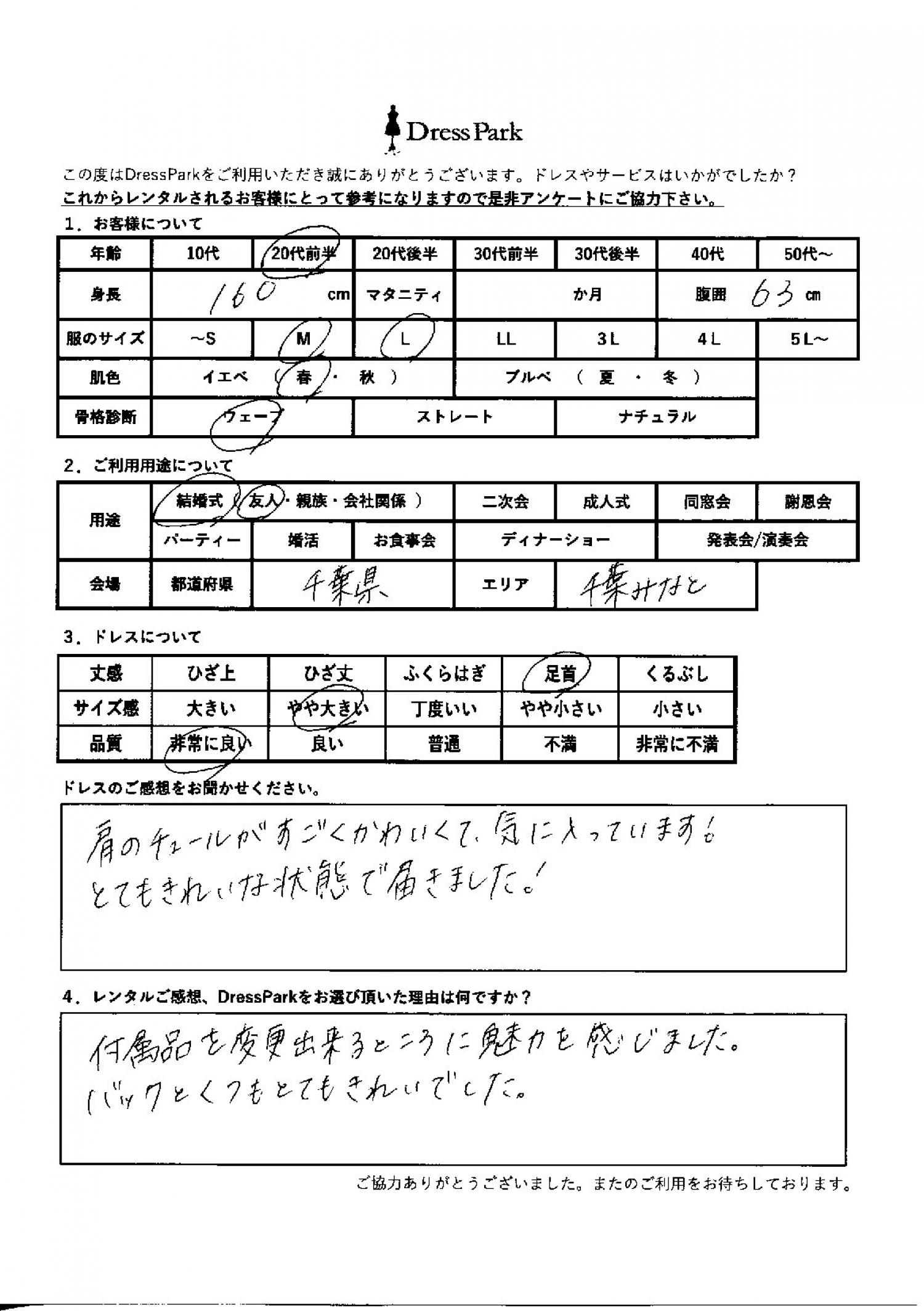 肩のチュールがすごく可愛くて気に入っています!とてもきれいな状態で届きました!レンタルのご感想、