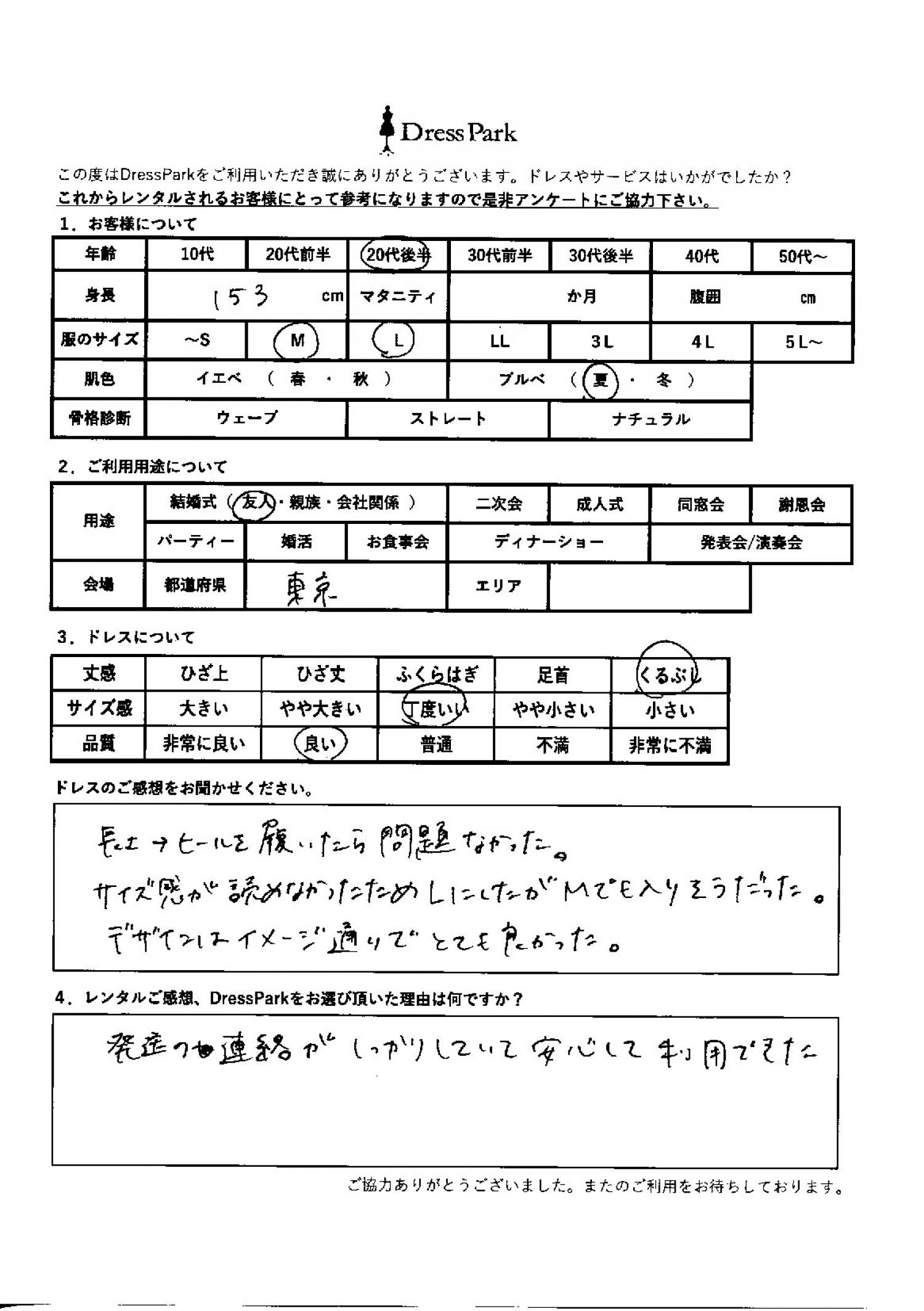 東京都 K.O様153㎝ Mサイズ
