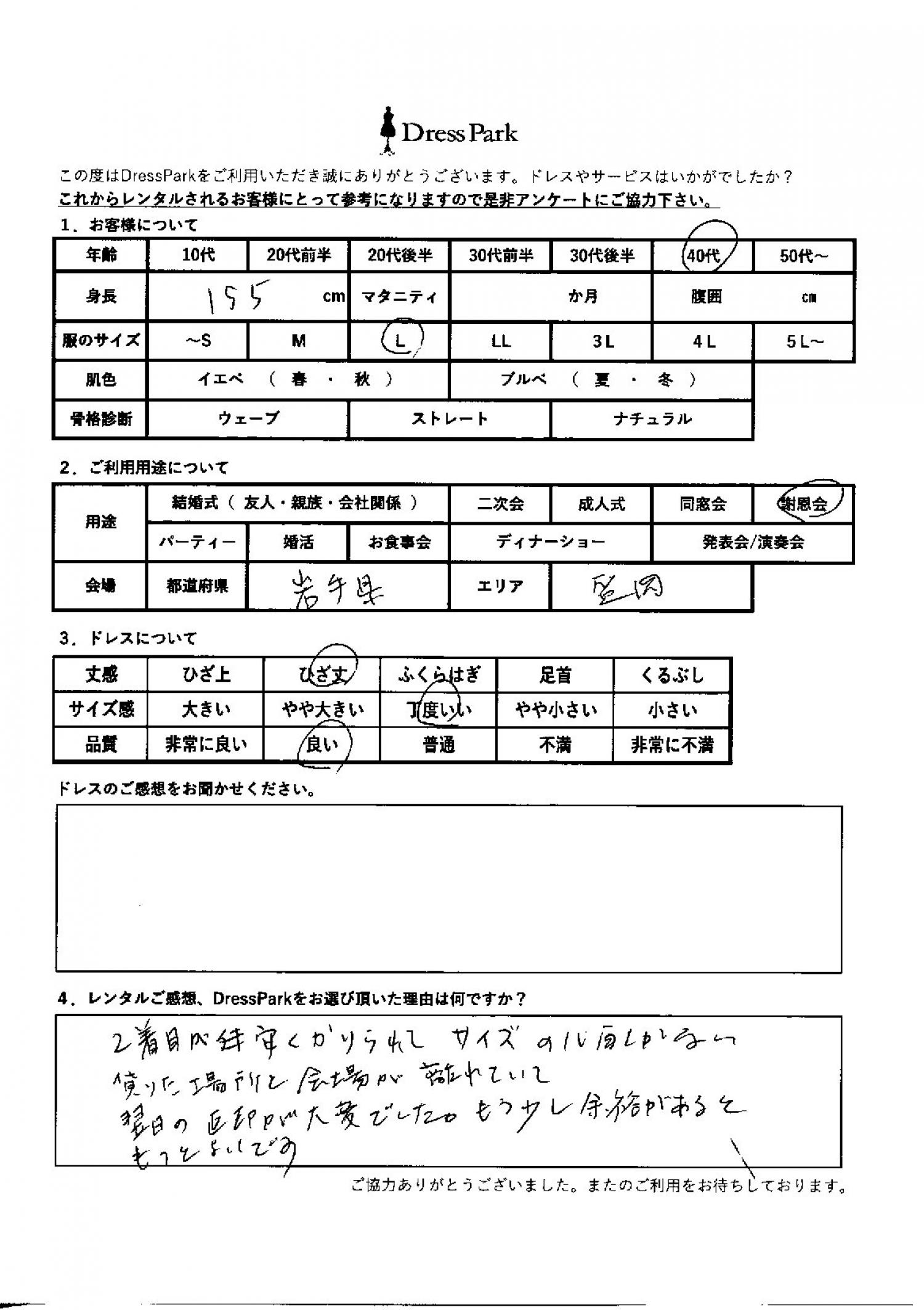 岩手県 J.N様155㎝ Lサイズ
