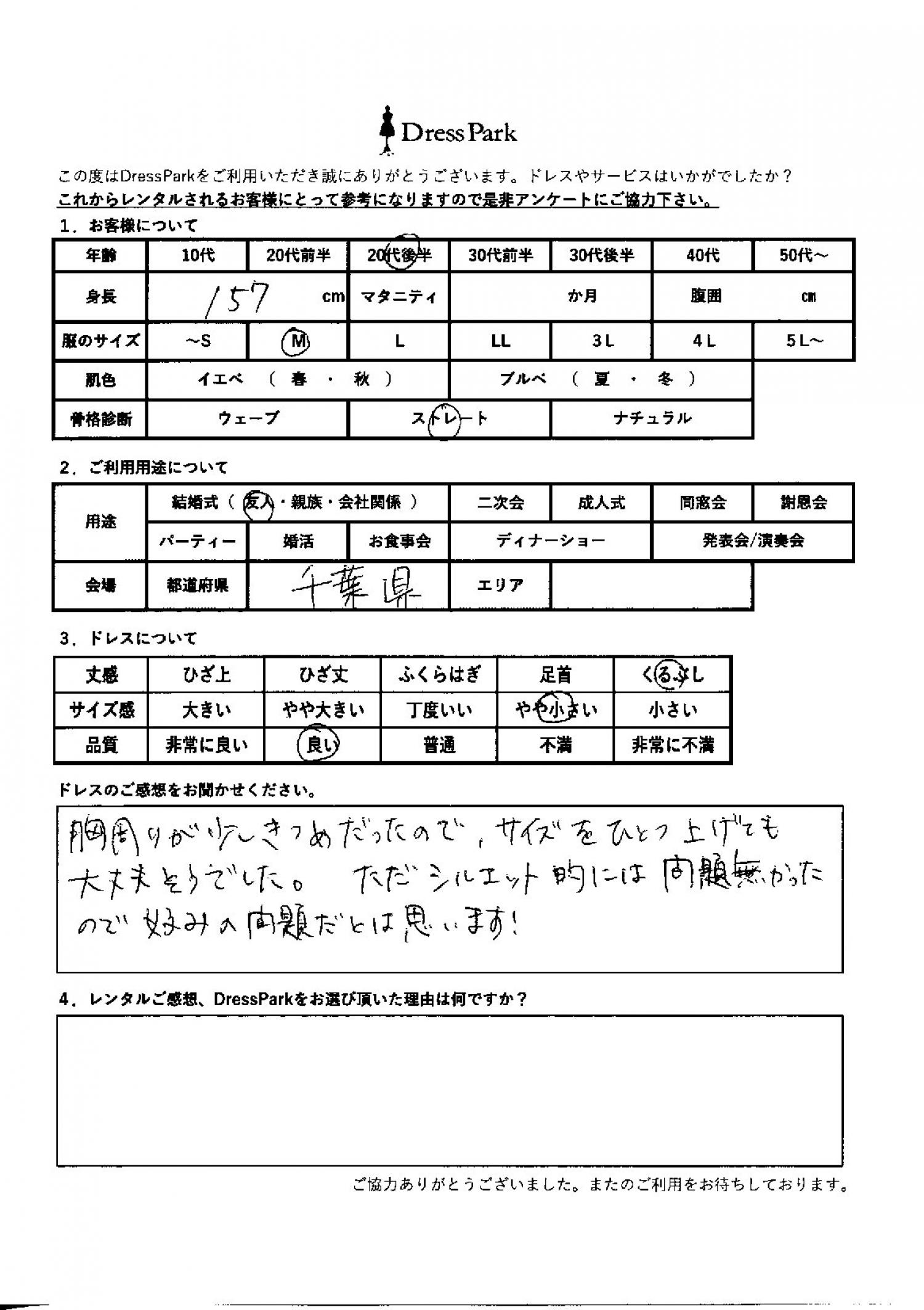 千葉県 M.S様157㎝ Mサイズ #20代#M/L#155~159㎝#結婚式(友人)#千葉県 ◆レンタルしたドレスはこちら ◆レンタルしたサイズは:S ◆レンタルした日付:2026/03/28 ドレスの着用感 ◆点数: (4点) ◆丈感:くるぶし ◆サイズ感:やや小さい ◆品質:良い ◆骨格診断:ストレート ドレスの感想 胸周りが少しきつめだったので、サイズを1つあげても大丈夫そうでした。ただシルエット的には問題なかったので、好みの問題だとは思います! CUSTOMER REVIEWS お客様の声 気になるカテゴリー別にご利用の感想をチェック! ◆AGE 年代で見る 10代 20代 30代 40代 50代~ ◆SIZE サイズで見る SS/S M/L 大きいサイズLL~ ◆HIGHT 身長で見る 140~149㎝ 150~154㎝ 155~159㎝ 160~164㎝ 165~169㎝ 170㎝以上 ◆マタニティ ~3か月 4~6か月 7~8か月 9~10か月 ◆肌色 イエベ ブルべ ◆骨格診断 ウェーブ ストレート ナチュラル ◆利用シーン 結婚式(友人) 結婚式(親族) 結婚式(会社関係) 二次会 成人式/同窓会 謝恩会 パーティー その他 CUSTOMER REVIEWS都道府県別お客様の声 都道府県別にのお客様の声をチェック! 北海道 青森県 岩手県 宮城県 秋田県 山形県 福島県 茨城県 栃木県 群馬県 埼玉県 千葉県 東京都 神奈川県 新潟県 富山県 石川県 福井県 山梨県 長野県 岐阜県 静岡県 愛知県 三重県 滋賀県 京都府 大阪府 兵庫県 奈良県 和歌山県 鳥取県 島根県 岡山県 広島県 山口県 徳島県 香川県 愛媛県 高知県 福岡県 佐賀県 長崎県 熊本県 大分県 宮崎県 鹿児島県 沖縄県 CUSTOMER REVIEWSエリア別お客様の声 都道府県別にのお客様の声をチェック! 札幌 仙台 名古屋 軽井沢 金沢 神戸・芦屋 博多 那覇 梅田・新大阪 難波・心斎橋 鎌倉・湘南 横浜・みなとみらい 舞浜・浦安・幕張 大宮・浦和 青山・表参道 六本木・麻布 渋谷・恵比寿 新宿 池袋 銀座・丸の内 お台場・汐留 鹿児島市 郡山市 福島市 東予 甲府・石和 LINEでお問い合わせ このサイトではJavaScriptを使用しています