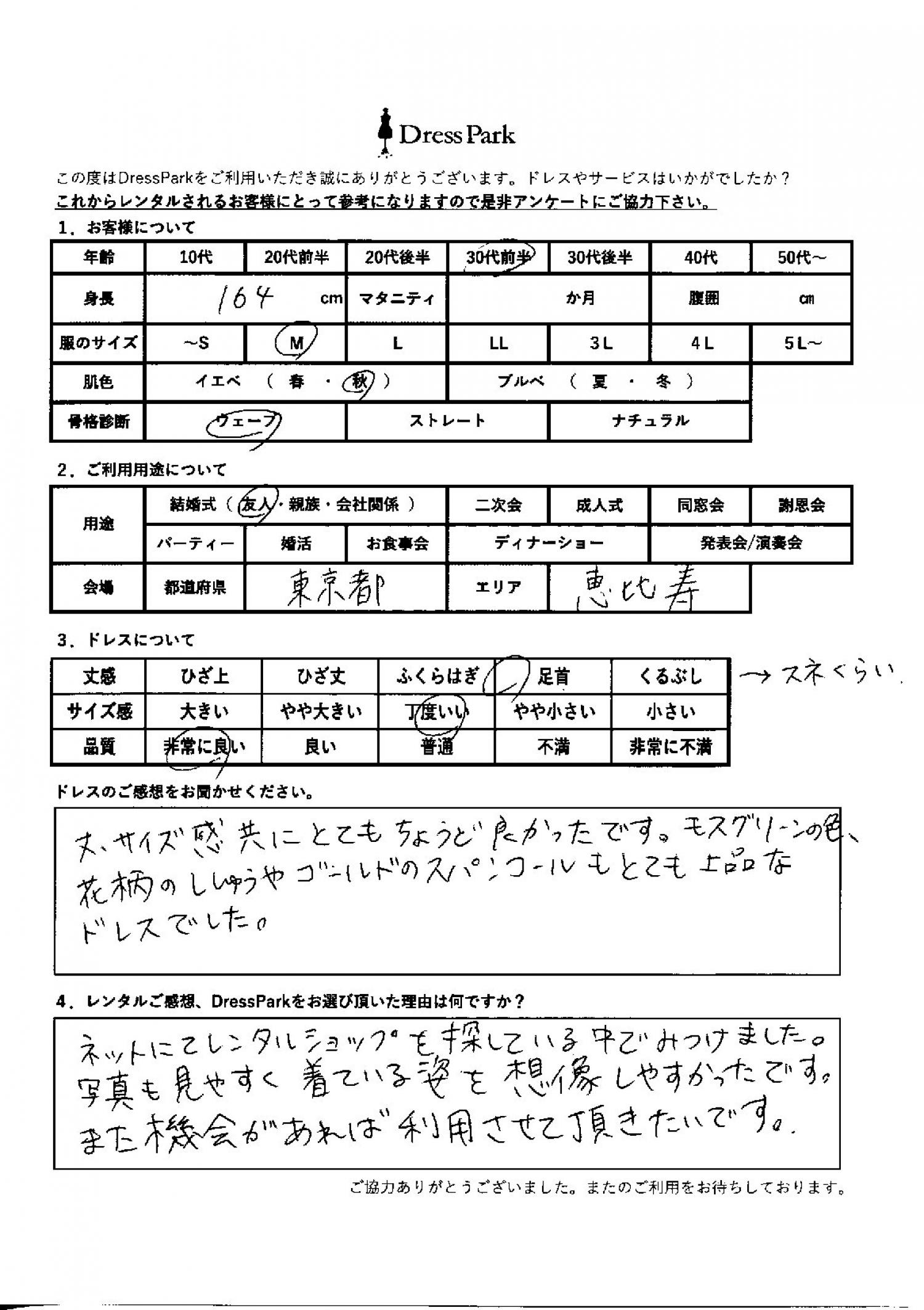 東京都 E.H様164㎝ Mサイズ渋谷・恵比寿