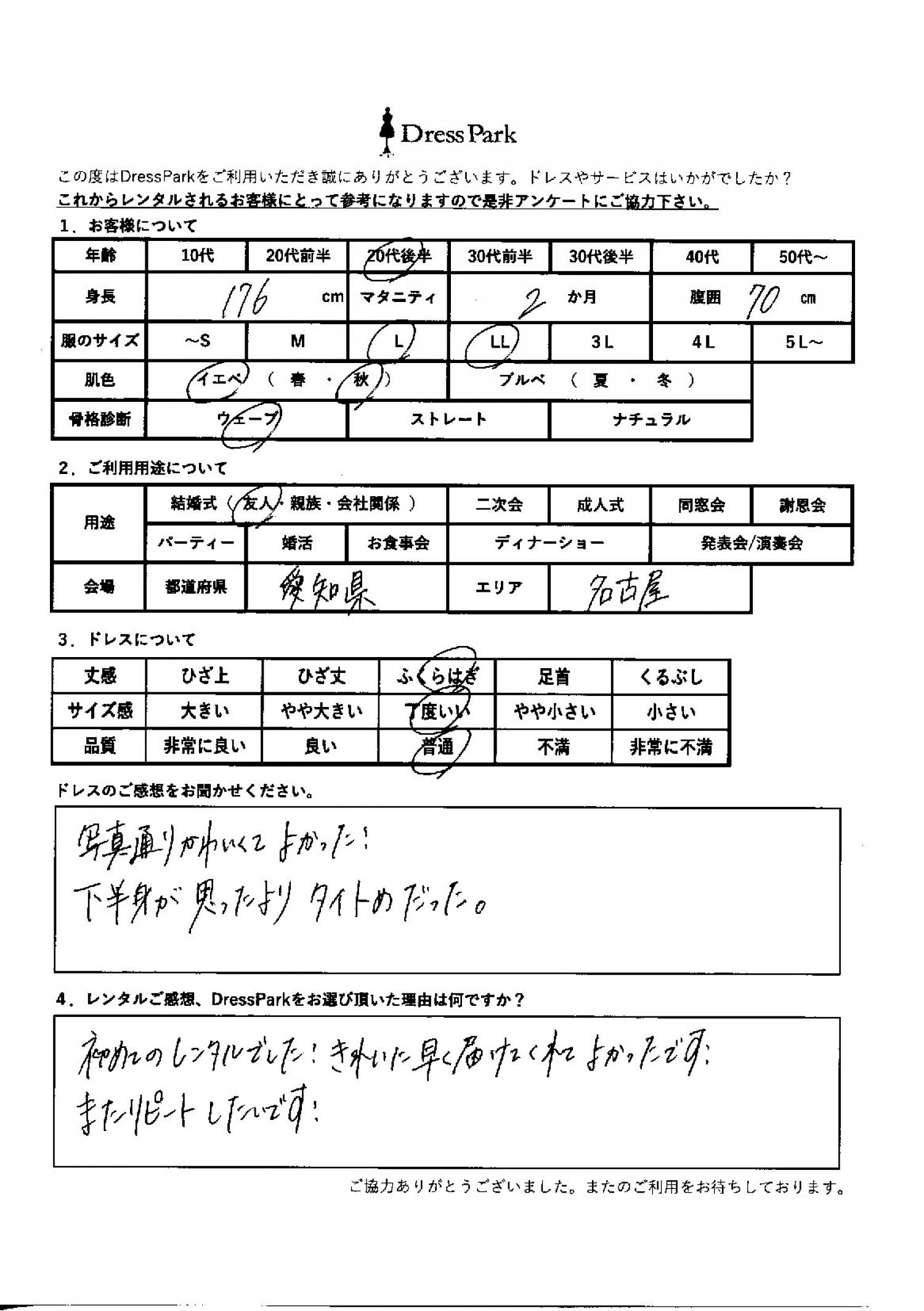 愛知県 A.K様176㎝ Lサイズ名古屋 マタニティ