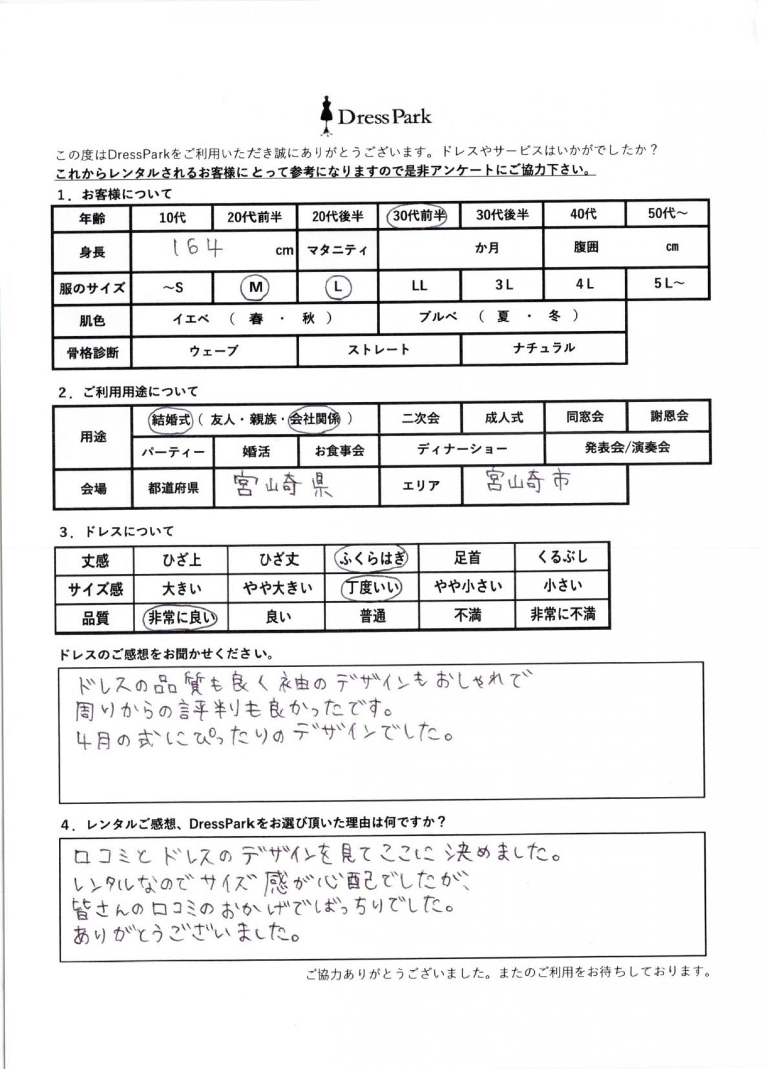 宮崎県 M.T様164㎝ Lサイズ