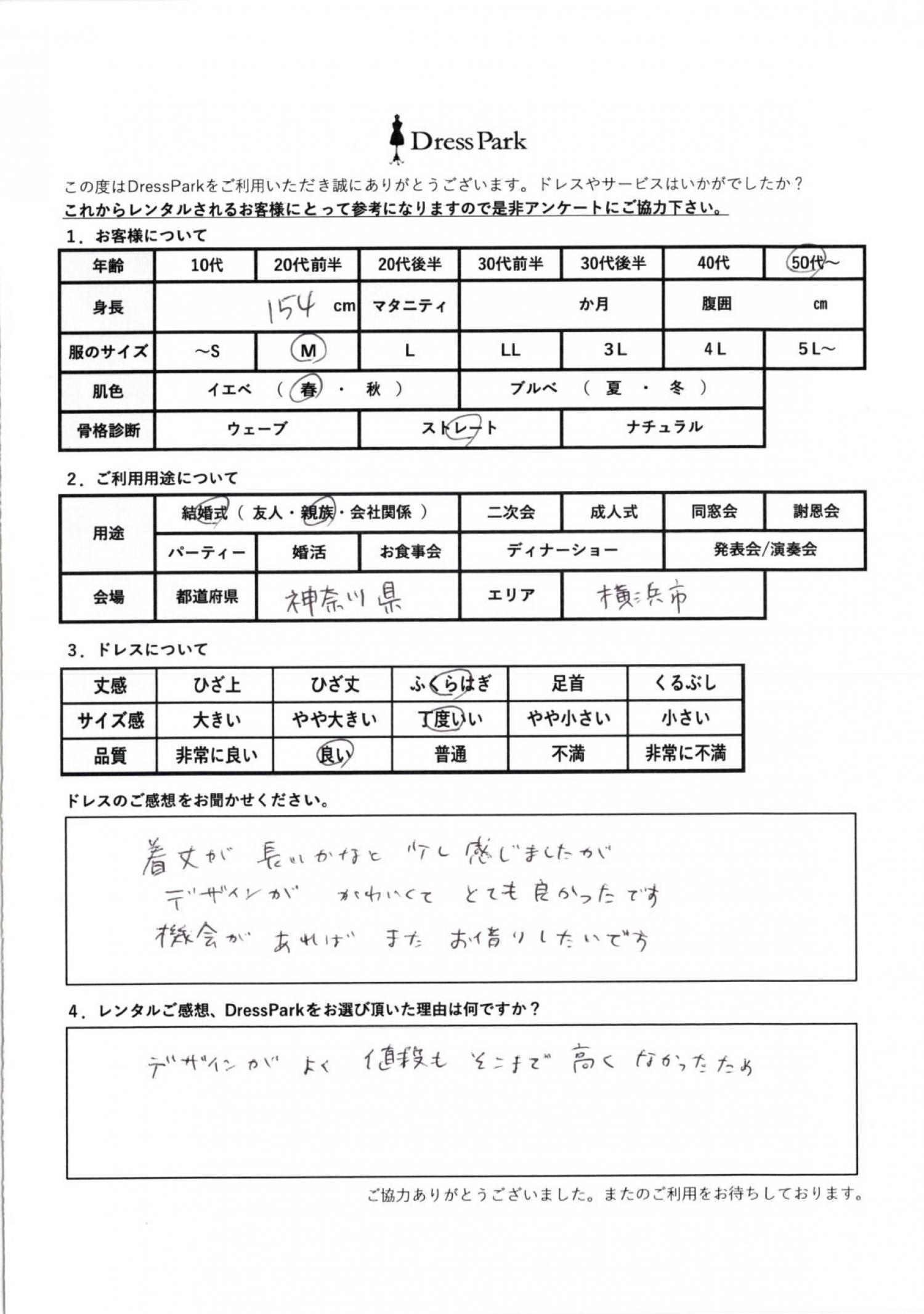 神奈川県 J.S様154㎝ Mサイズ横浜・みなとみらい